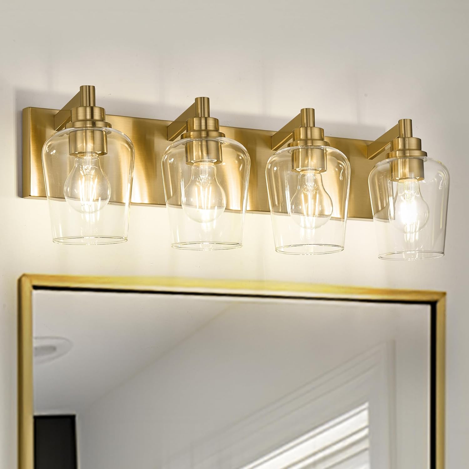 - Bulb Requirements: This gold bathroom lighting fixtures over mirror requires 4 E26 base bulbs, 60W Max. Fully dimmable when used with a dimmable bulb and dimmer switch (bulb and dimmer switch not included)