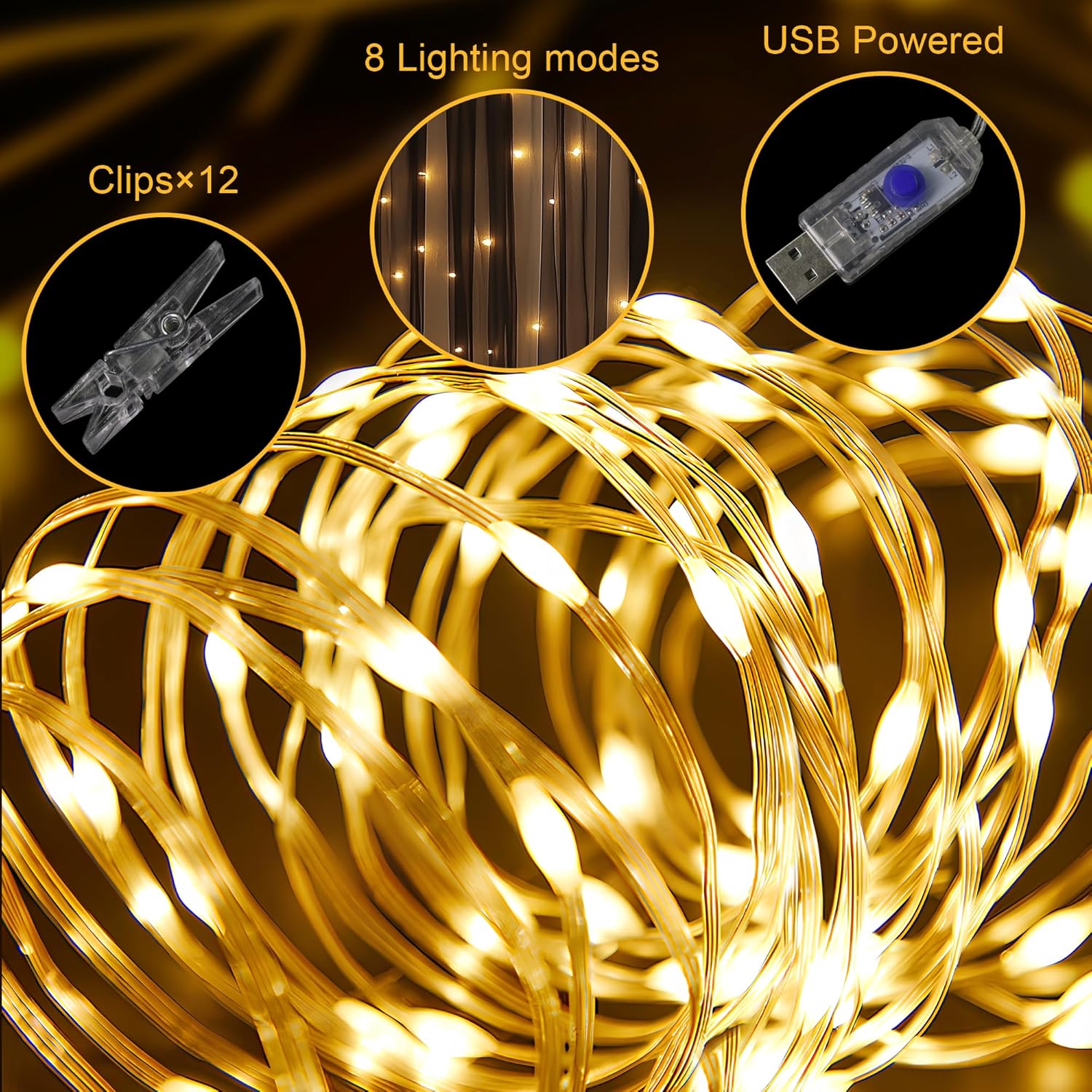 - Easy to Set: light curtain backdrop with rod pockets at the top for easy hanging on backdrop stand, attach the string lights to the sheer backdrop curtains with plastic clips, then untie the 10 light strings and plug the curtains lights into a portable external batteries or an outlet with a USB port. Note: Put away from sharp items to avoid causing the curtain with lights damaged.