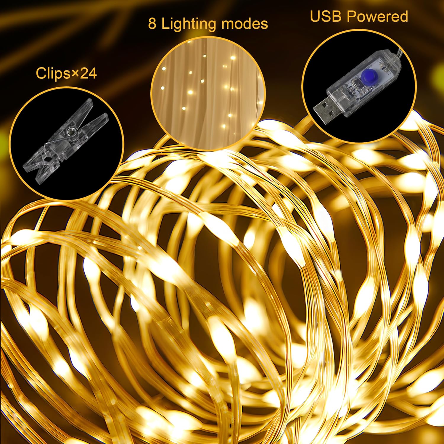 - Easy to Set: The Champagne curtain backdrop with rod pockets at the top for easy hanging on backdrop stand, attach the string lights to the sheer curtains with plastic clips, then untie the light strings and plug the curtains lights into a portable external batteries or an outlet with a USB port. Note: Put away from sharp items to avoid causing the curtain with lights damaged.