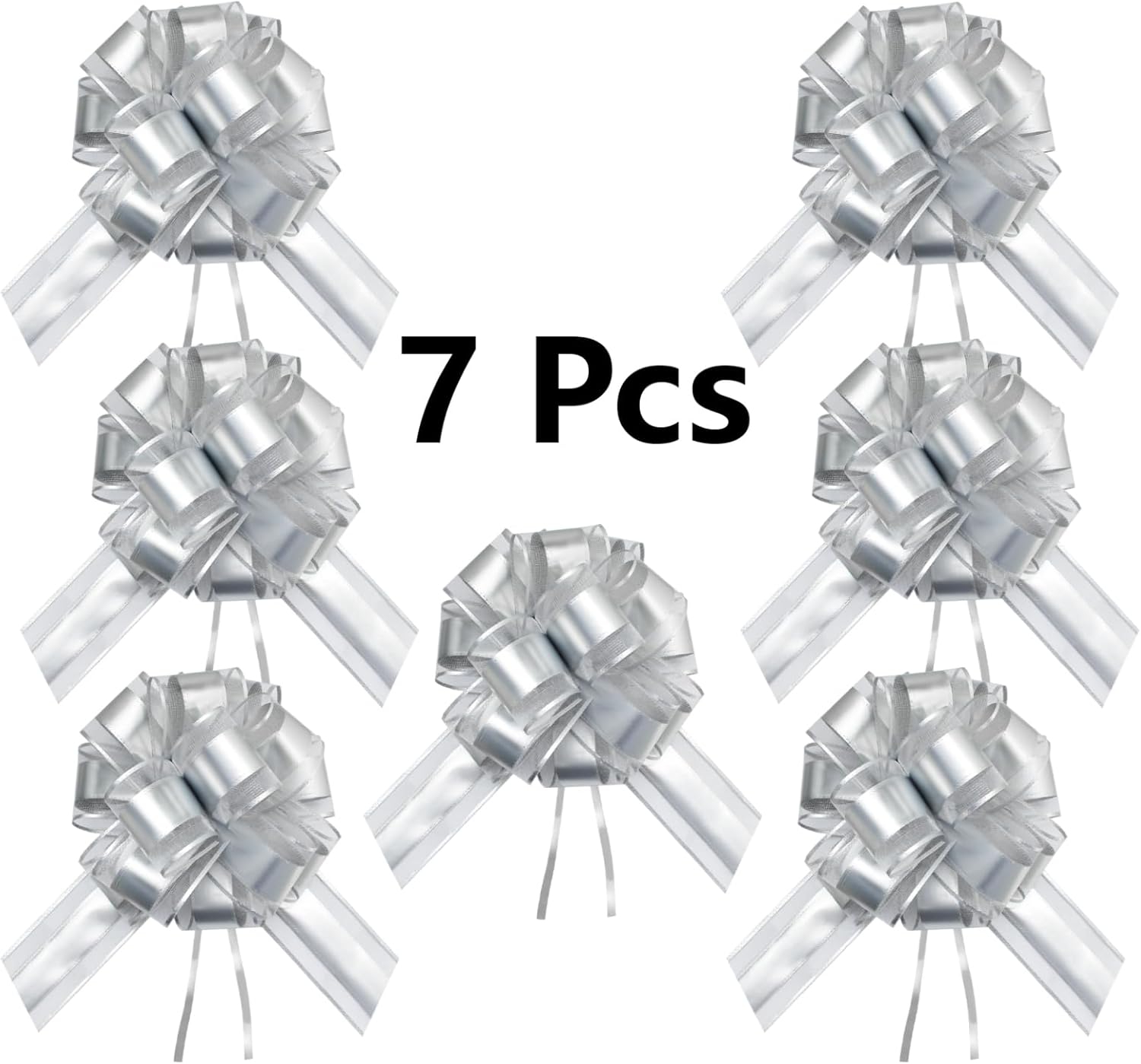 7 Pieces Large Pull Bows, 6 inche, Big Bow for Gift Wrapping, Christmas Party Birthday Gift, Wedding Baskets,Valentine's Day Gift Decorations, Flower Decoration (Silver)
