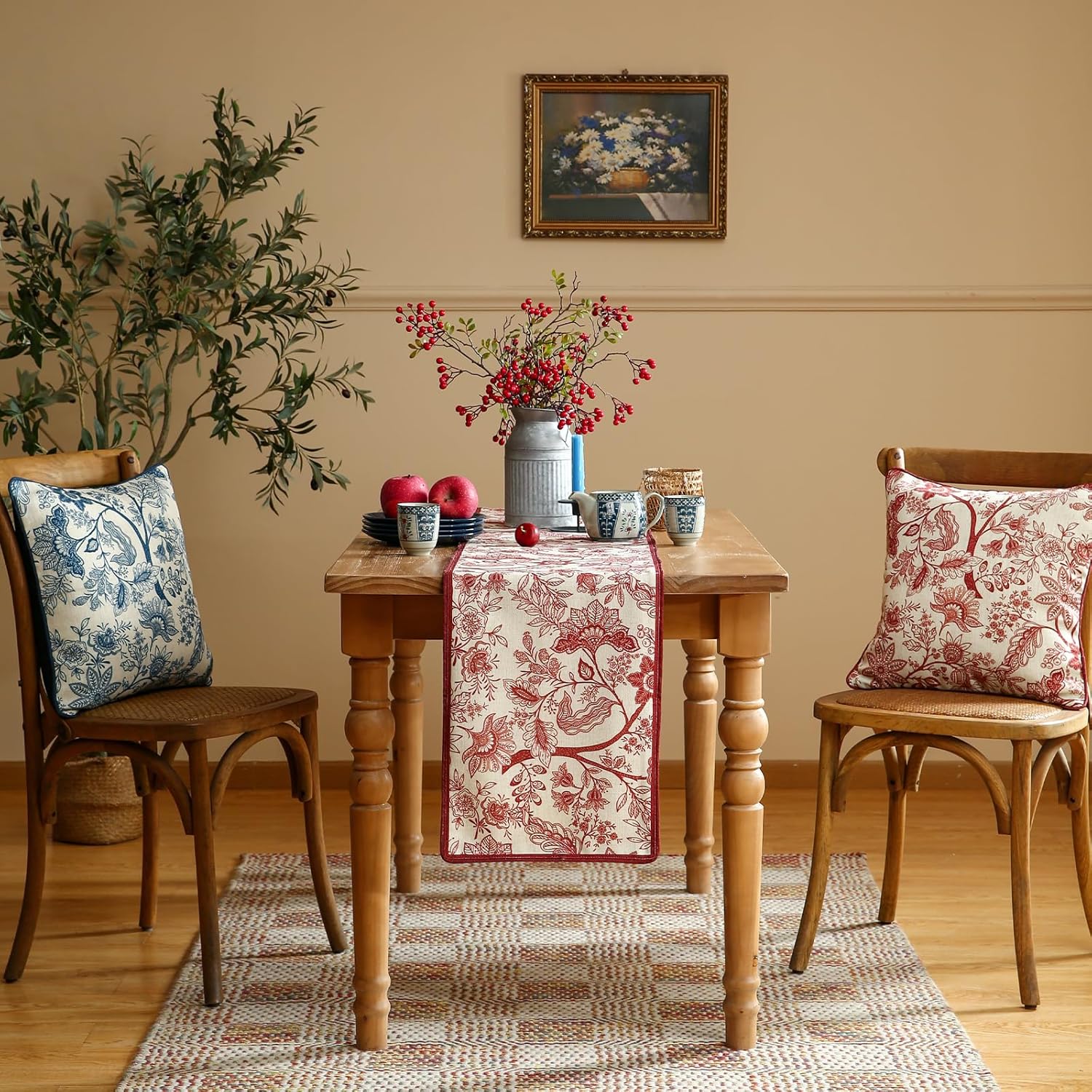 - Unique Design:Each table runner features patterns hand-drawn by our designers,showcasing exquisite details and rich textures for stunning visual appeal.The meticulous stitching ensures a smooth,wrinkle-resistant,and durable finish.With its fresh,rustic yet elegant style,it adds vibrancy and charm to your home decor