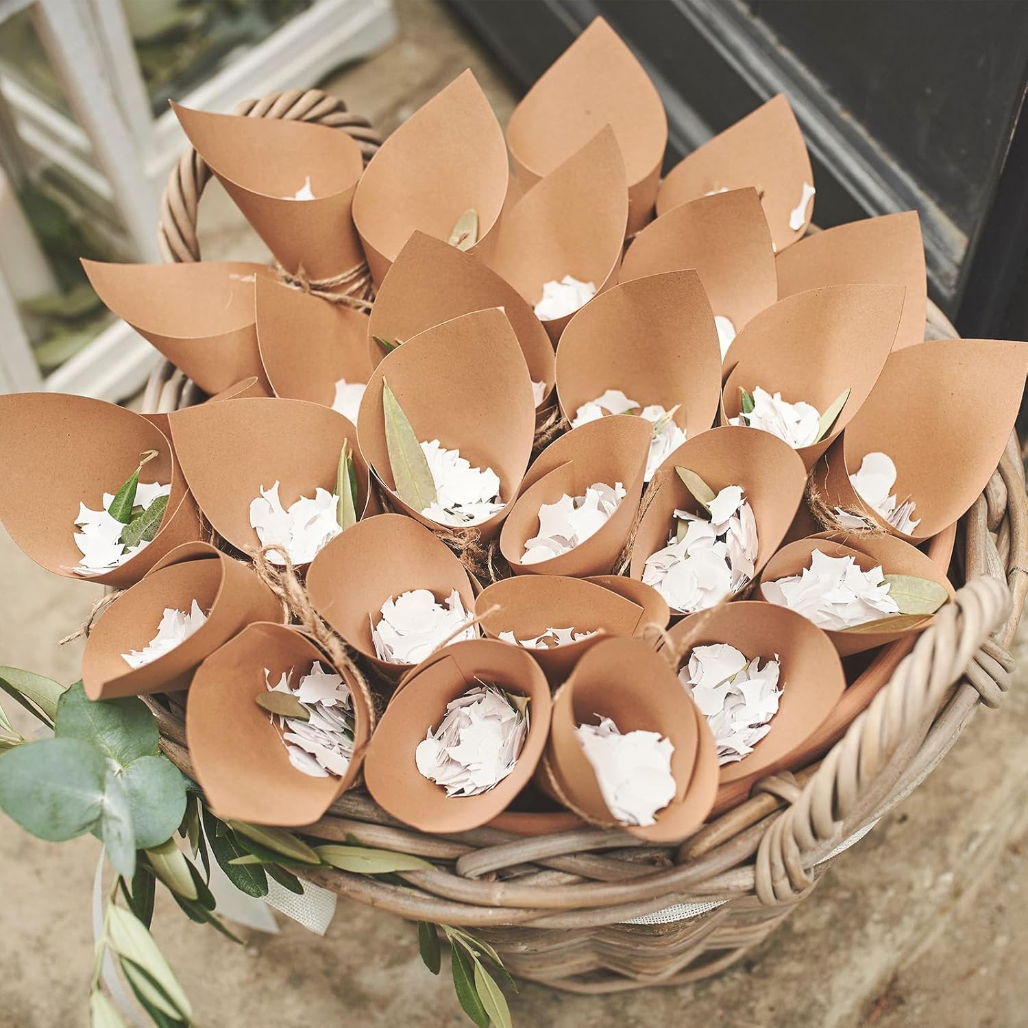 PATIKIL Wedding Confetti Cones, 120 Pcs Paper Tapers Cone Flower Petal Paper Cone Holder for Party Engagement Holiday Birthday DIY Decoration, Brown