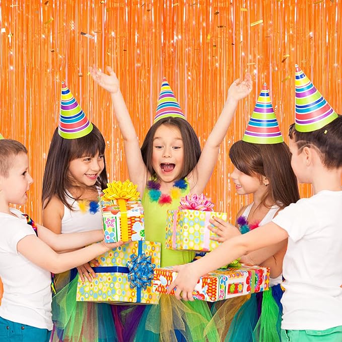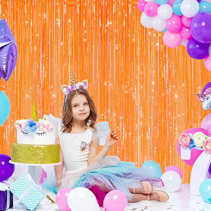 2 Pack Orange Metallic Tinsel Foil Fringe Curtains, Door Streamers Photo Booth Backdrop for Birthday Party, Tinsel Curtain Backdrop for Baby Shower Bachelorette Christmas Party Decorations