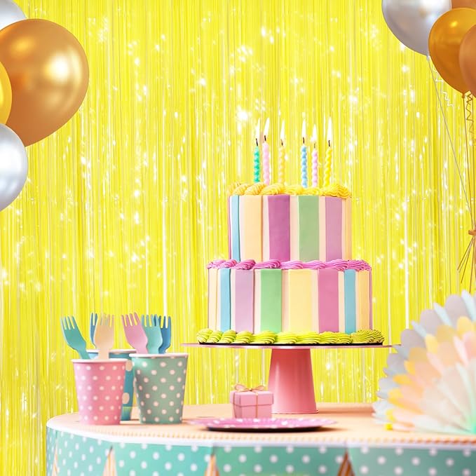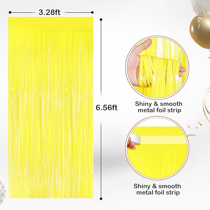 2 Pack Yellow Metallic Tinsel Foil Fringe Curtains, Door Streamers Photo Booth Backdrop for Birthday Party, Tinsel Curtain Backdrop for Baby Shower Bachelorette Christmas Party Decorations