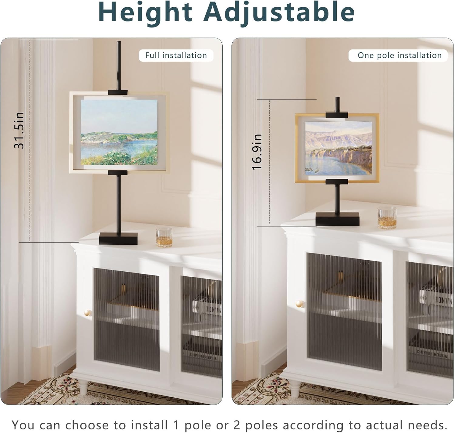 - ADJUSTABLE: Experience the ultimate flexibility in showcasing your artwork and memories with our adjustable art display stand for table. Freely adjustable height to fit your frame(up to 29.7"H, 1.5"D). Note: Please do not overtighten while adjusting to avoid damaging the coating.