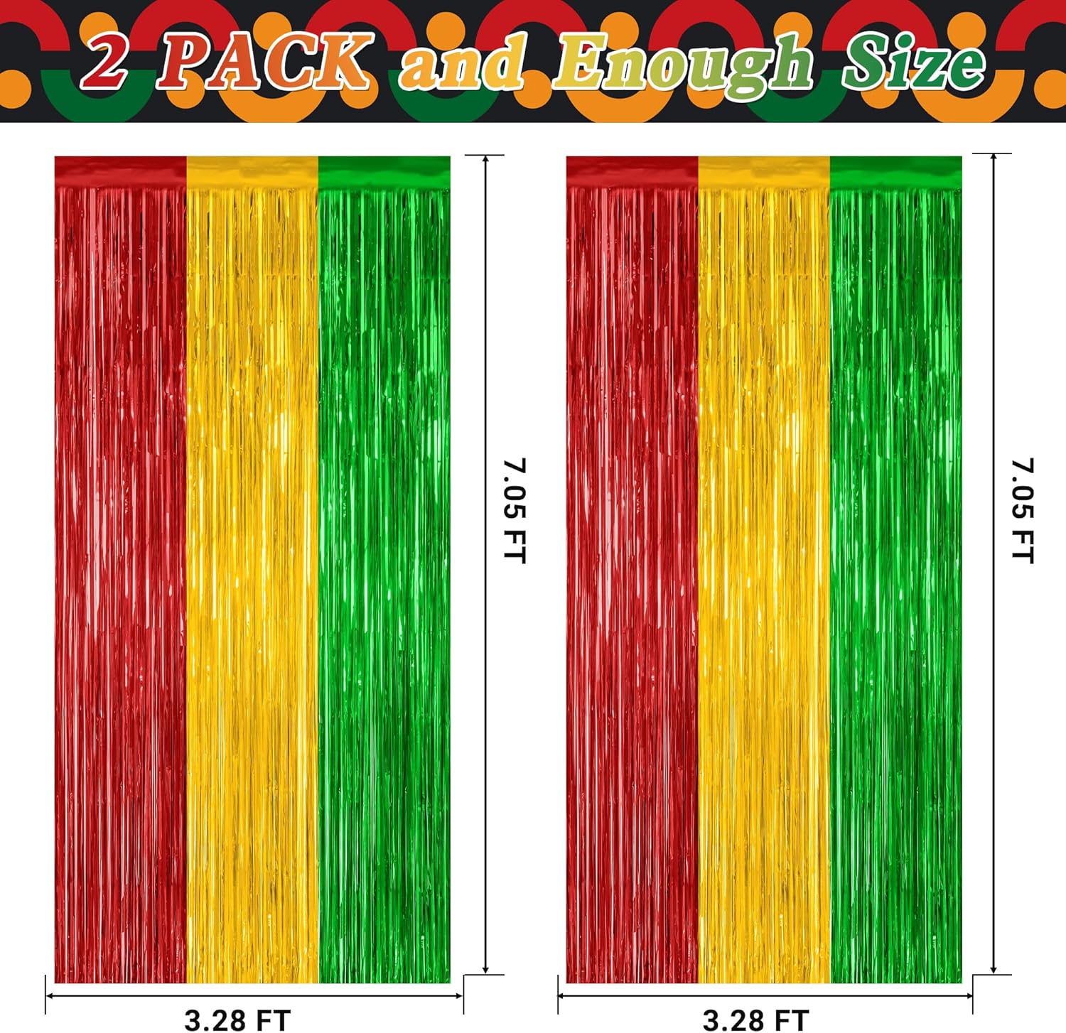 2 Pack Black History Month Decorations, 3.28 FT x 7.05 FT Backdrop Curtains, Red Yellow Green Color Tinsel Backdrop Fringe Curtains Party Streamer, Black History Month Door Decor