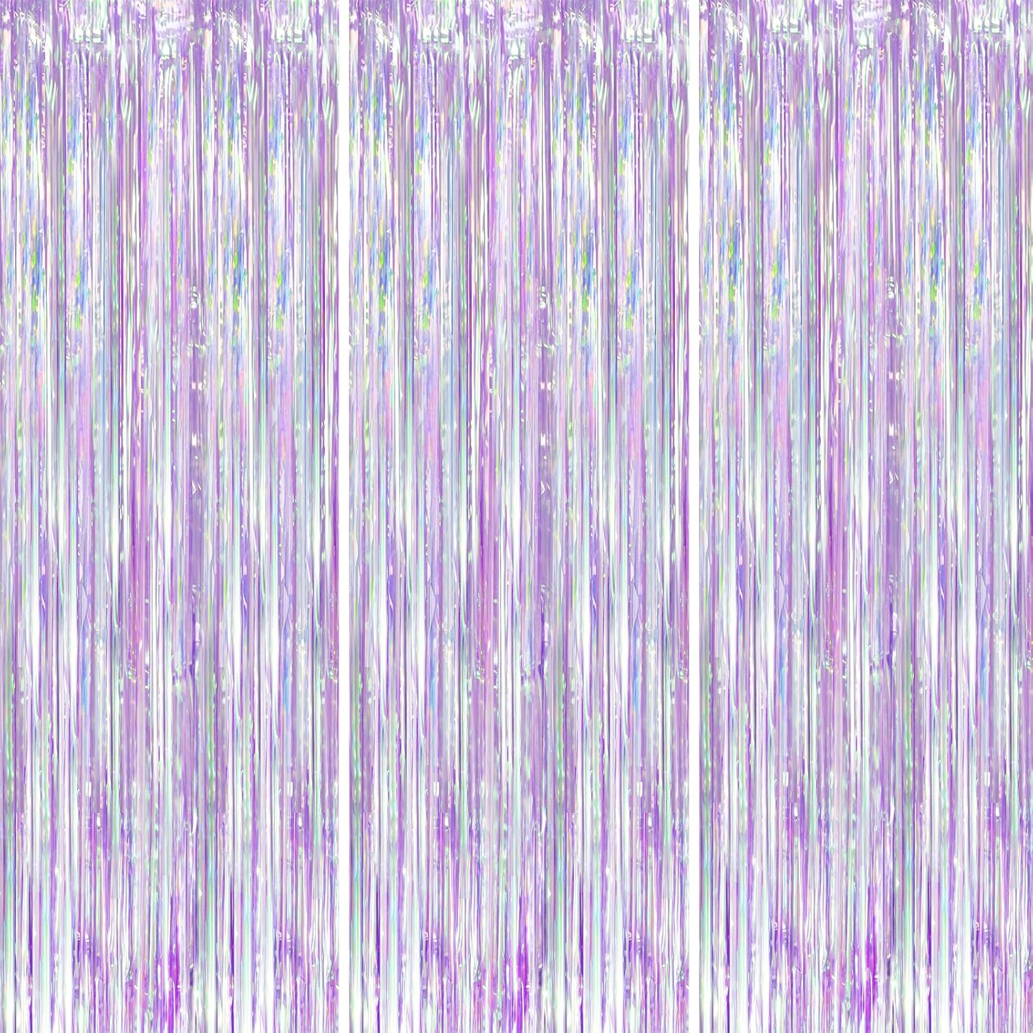 Iridescent Party Backdrop 3Packs, Transparent Tinsel Foil Fringe Curtain Streamers for Girls Birthday, Weddings,Engagement, Mermaid, Unicorn Theme Party Decorations 3.3x8.2ft
