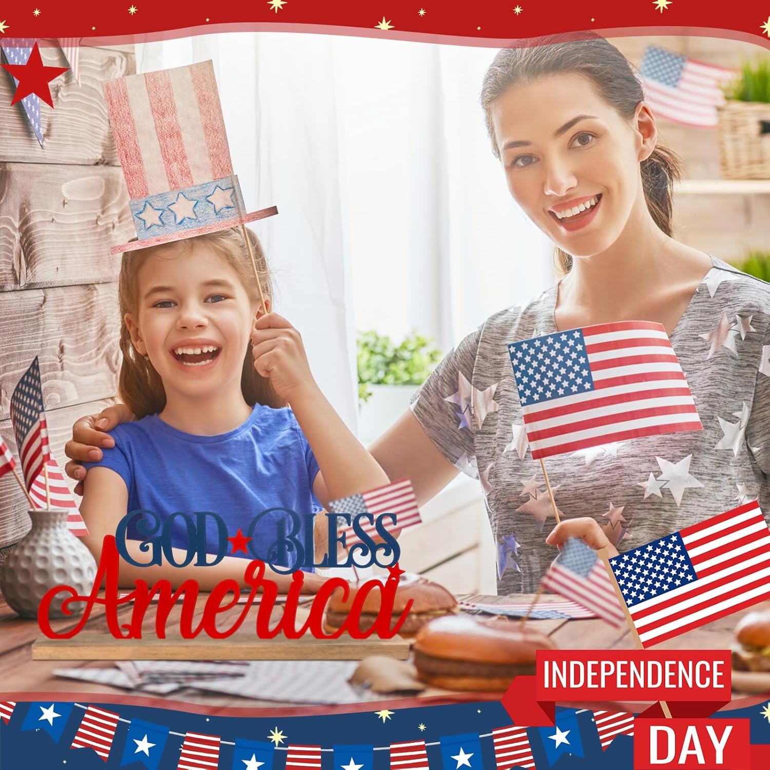 - The Package Includes: you will receive a 4th of July table decorations with a wooden base; You will need to insert a metal sign into the wooden base, which will stand firmly and reliably, adding eye catching colors to your home