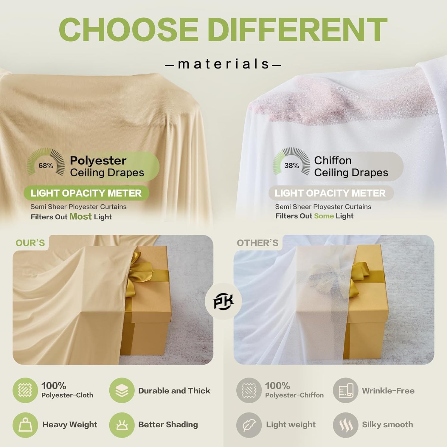 - 15FT Extra Long Backdrop Drapes: 10 Panels 5ftx15ft Beige Backdrop Curtains for Parties. Totally 50FT(Width) x 15FT(Height). cortinas para fiestas decoracion.