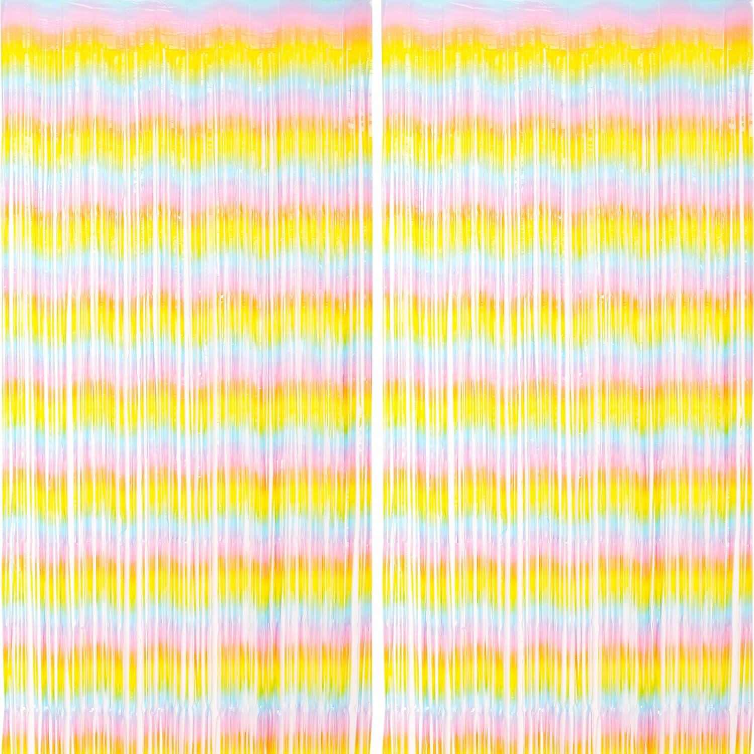 2 Pack Pastel Rainbow Foil Fringe Backdrop Curtains, Tinsel Streamers Birthday Party Decorations, Fringe Backdrop for Baby Shower, Gender Reveal, Birthday Party