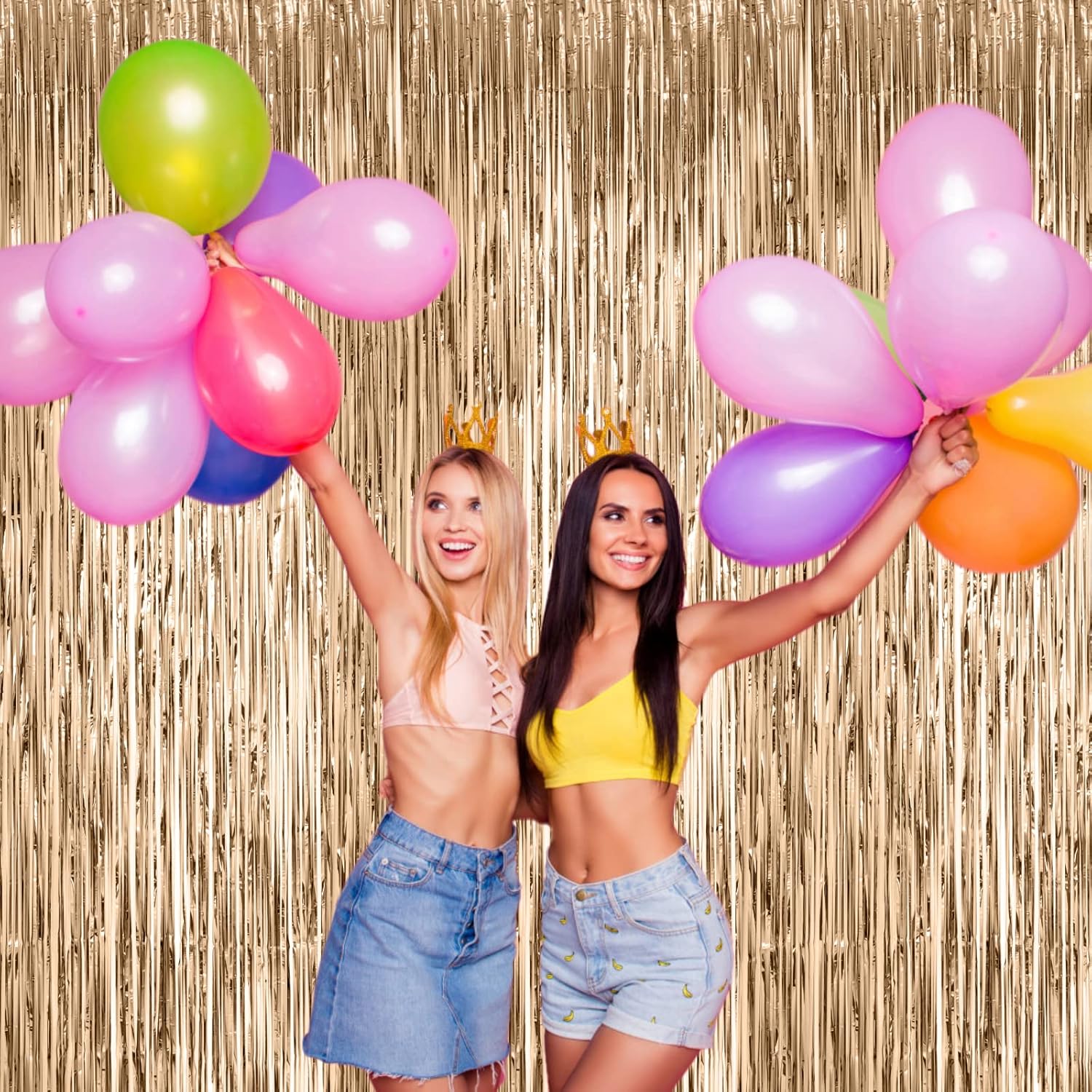 2 Pack Champagne Foil Fringe Backdrop Curtains, Tinsel Streamers Birthday Party Decorations, Fringe Backdrop for Anniversary, New Years, Birthday Party