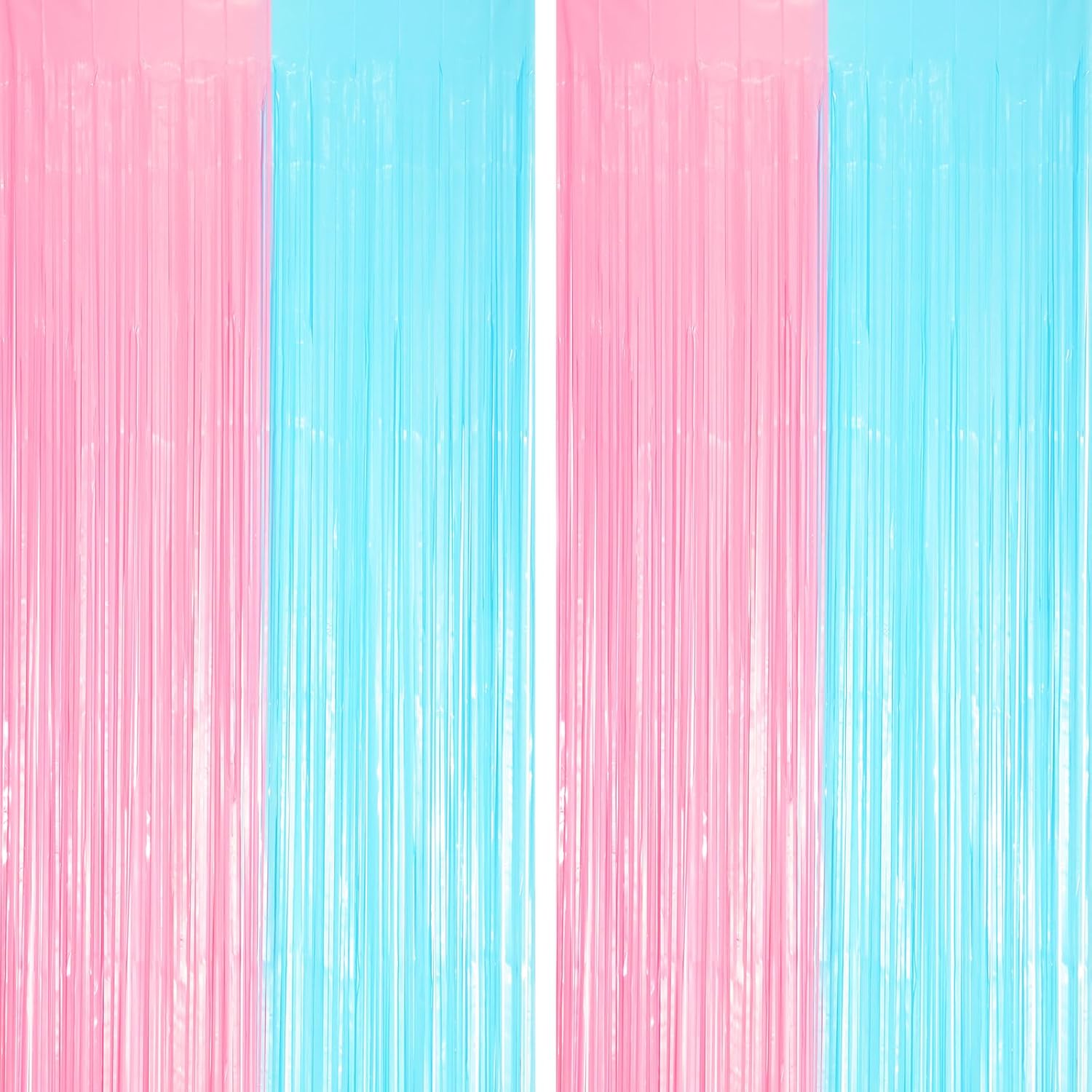2 Pack Pastel Blue and Pink Foil Fringe Backdrop Curtains, Tinsel Streamers Party Decorations, Fringe Backdrop for Gender Reavel, Baby Shower Party