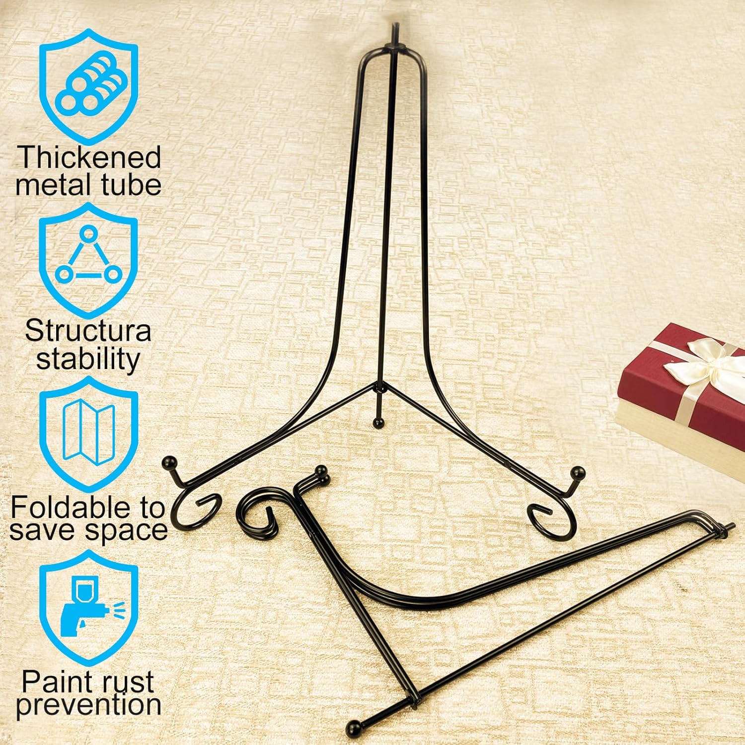2PCS Premium Black Iron Plate Stands for Display 12 Inch, Decorative Solid Metal Plate Holders for Displaying, Mini Easel, Frame, Book, Card, Plaque, Bowl, Picture Stands for Display
