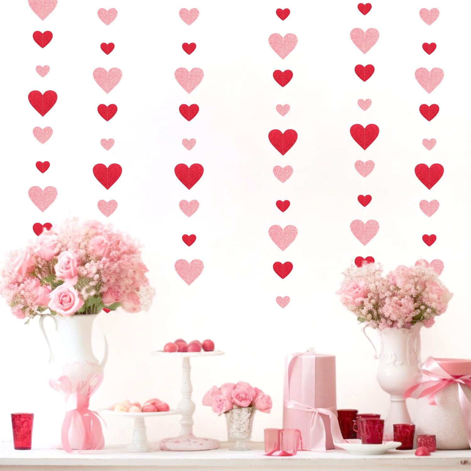 - 【Red Pink Valentines Decorations Kit Includes】The party garlands includes 6pcs paper garlands, each backdrop bunting is 7 feet/ 2 meters long, total length is 40 feet/12 meters. Every love shape Streamer Banner has 4pcs dots which the size is 4”, 4pcs dots which the size is 2.8”,4pcs dots which the size is 2”.