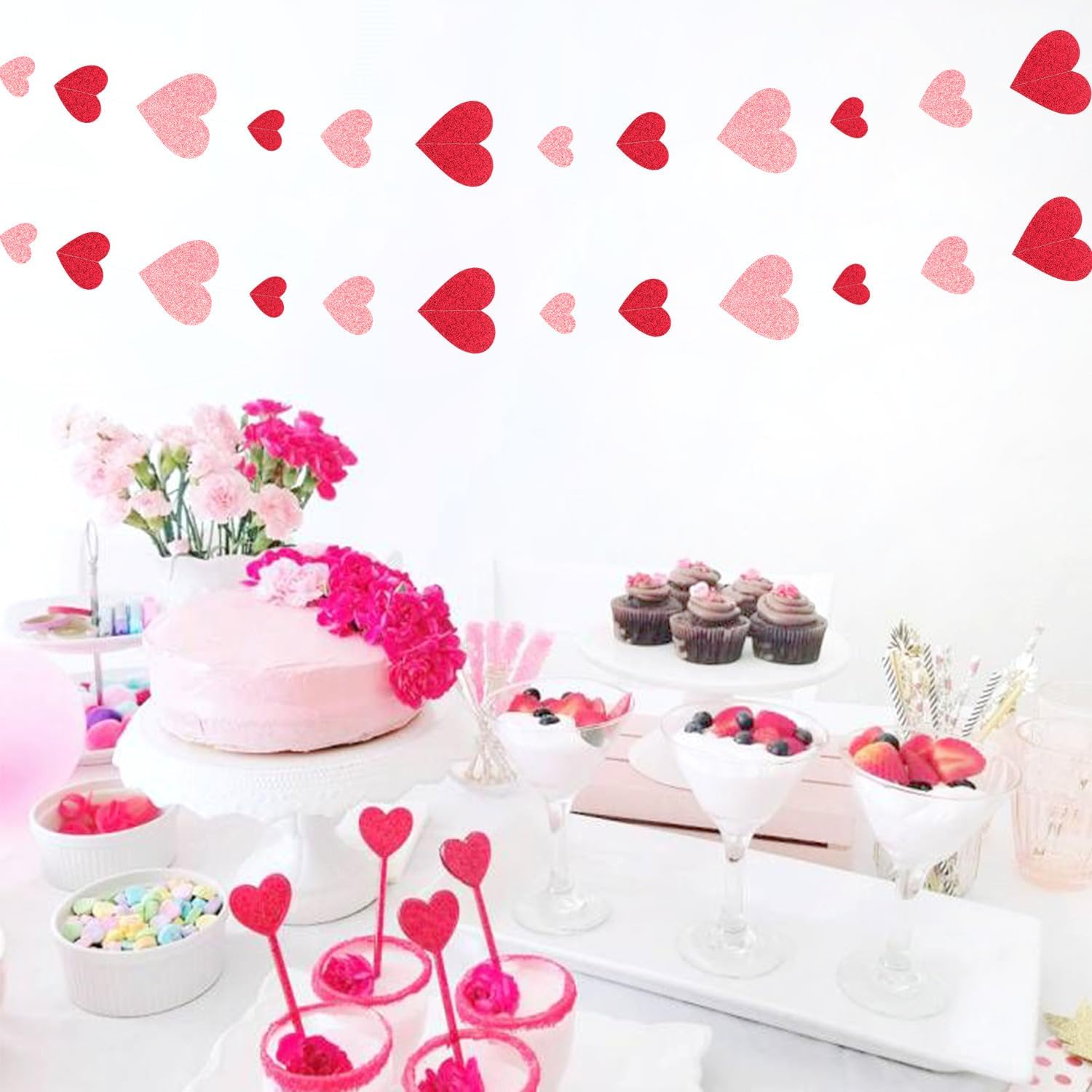Red Pink Party-Decoration Heart Garland - 40ft Galentines Hanging Paper Streamers, Proposal Anniversary Romantic Birthday Baby Shower Rustic Wedding Hanging Ornaments Decor Hugfond