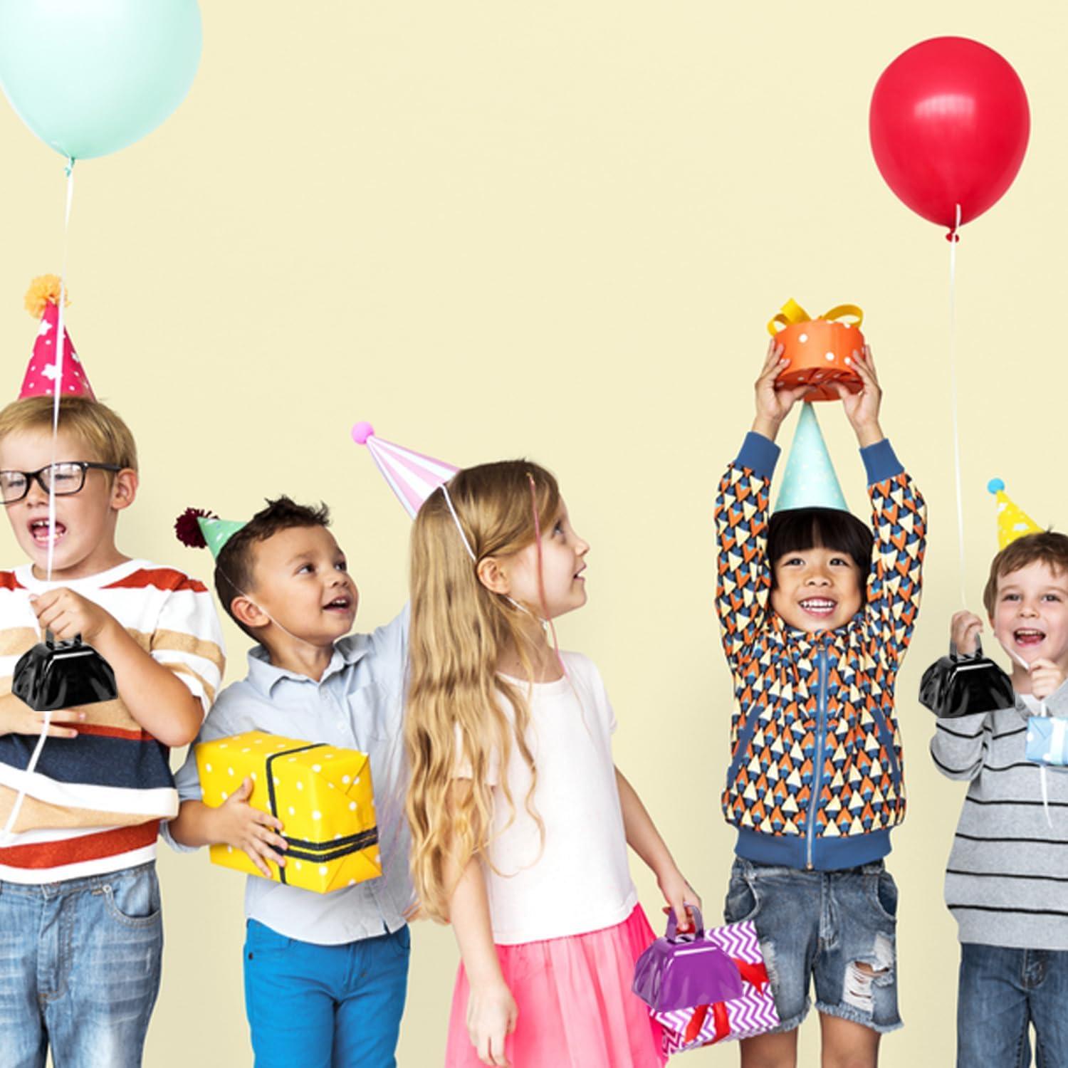 • SIZE: This set includes four small, hand-held cowbells, perfect for easy carrying. Each bell measures approximately 2.87" L x 2.4" W x 2.95" H.