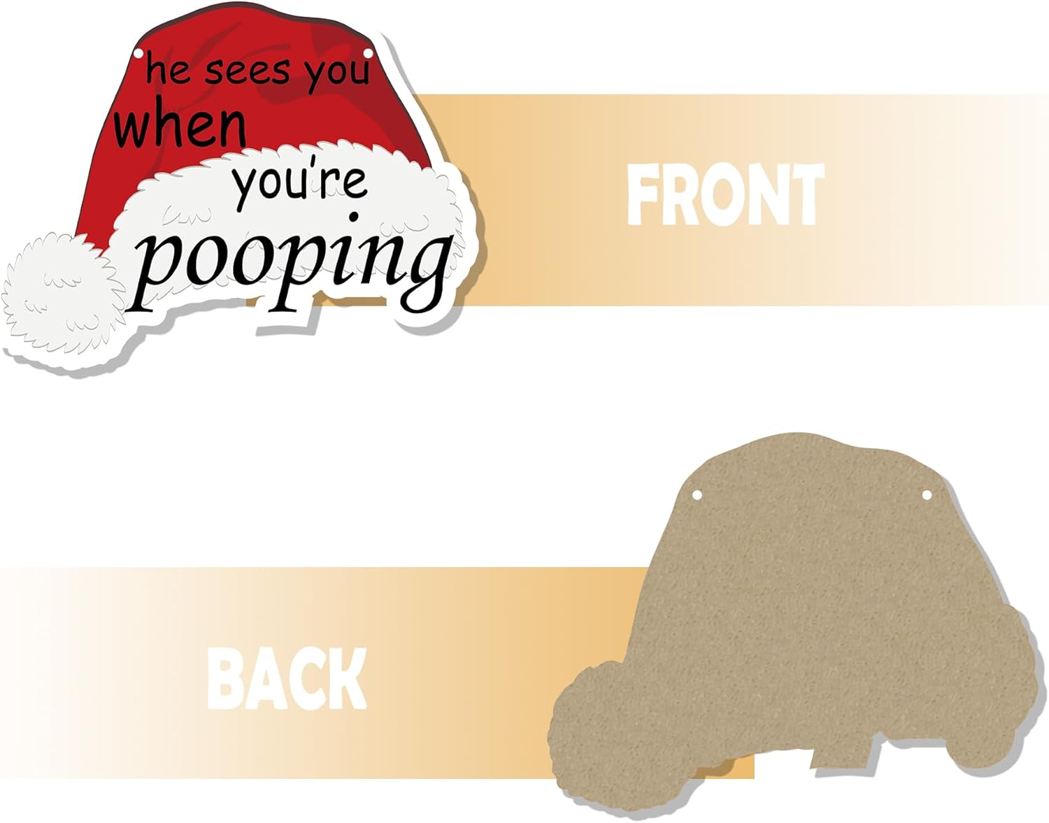 Funny Christmas Wooden Sign, Novelty Humor Xmas Hanging Sign Wall Decor for Guest Bathroom Toilet, Christmas Bathroom Home Door Decor 12 x 6 Inch