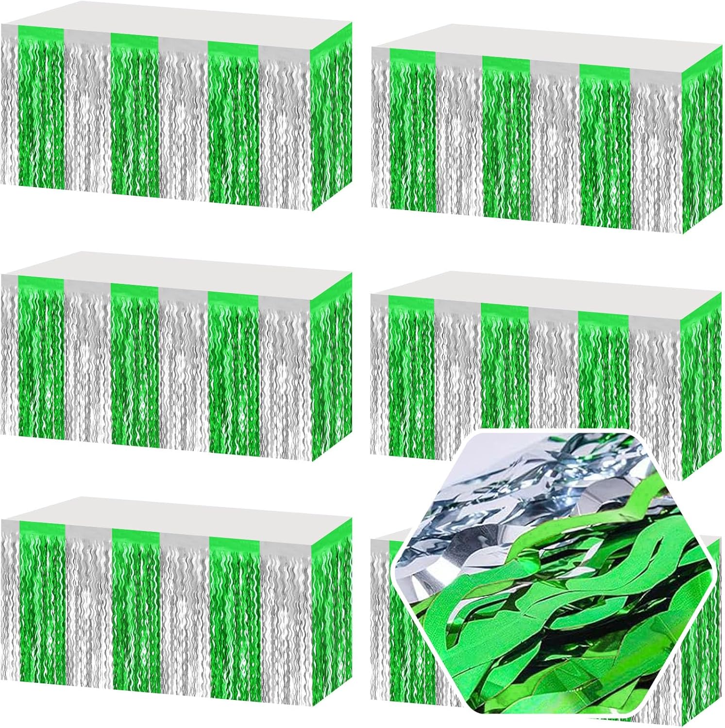 6 Pack 29 x108 Inch Silver Greenange Wave Foil Fringe Table Skirts Metallic Banner for Tinsel Streamer Garland Backdrop for Parade Floats, Mother's Day, Easter, Wedding, Birthday Party Decoration