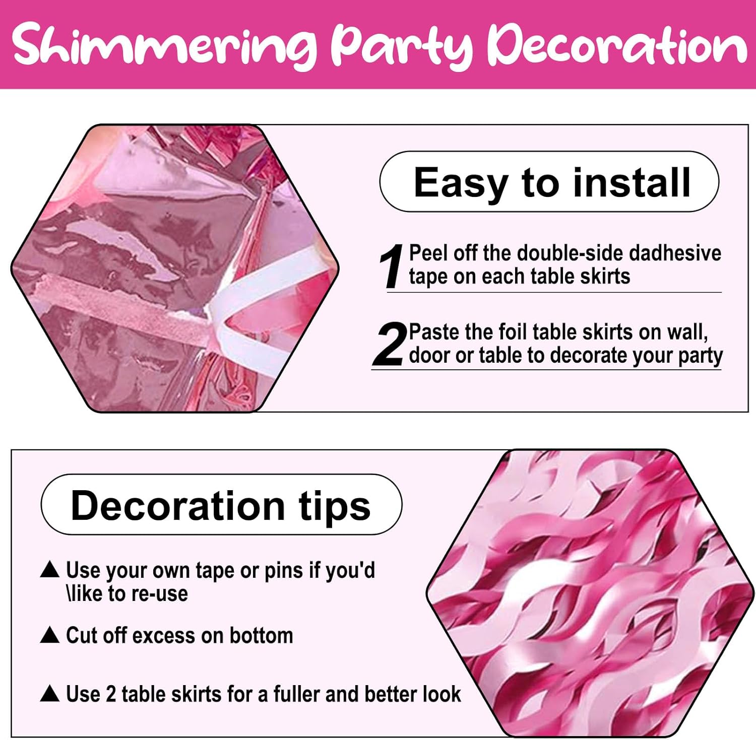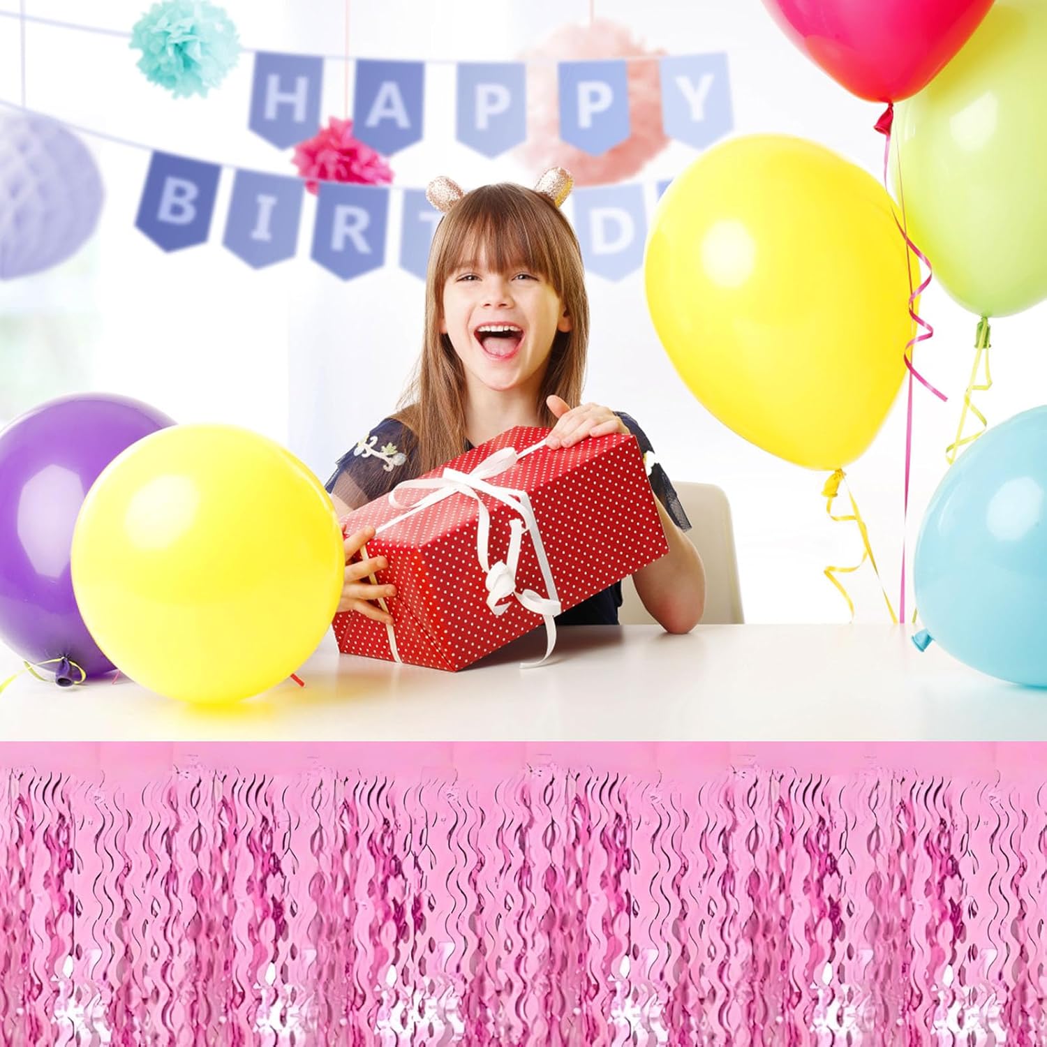6 Pack 29 x108 Inch Pink Wave Foil Fringe Table Skirts Metallic Banner for Tinsel Streamer Garland Backdrop for Parade Floats, Mother's Day, Easter, Wedding, Birthday Party Decoration
