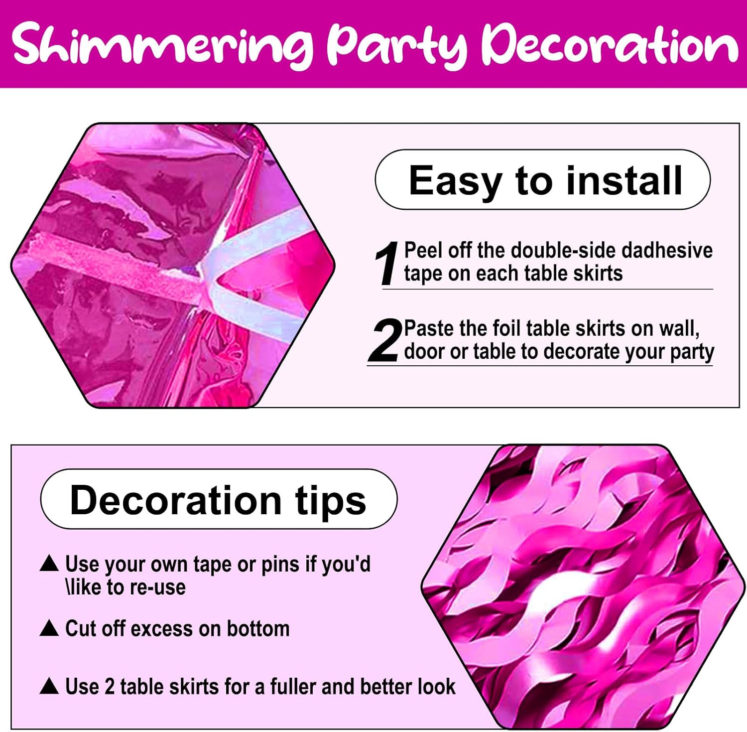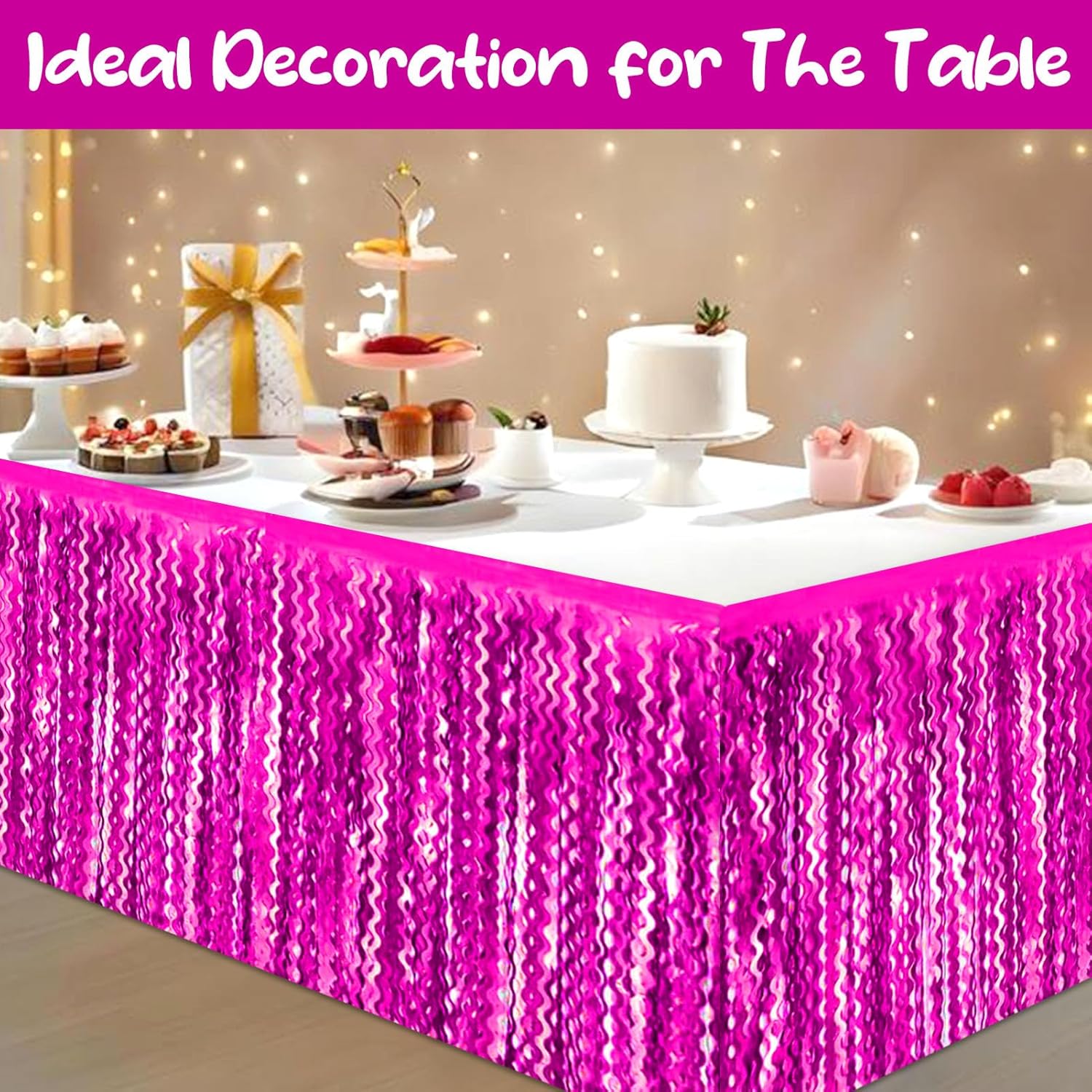 - Specifications and dimensions:6 Packs metallic foil tassel table skirt 29x108 inches, which is enough to decorate your party.
