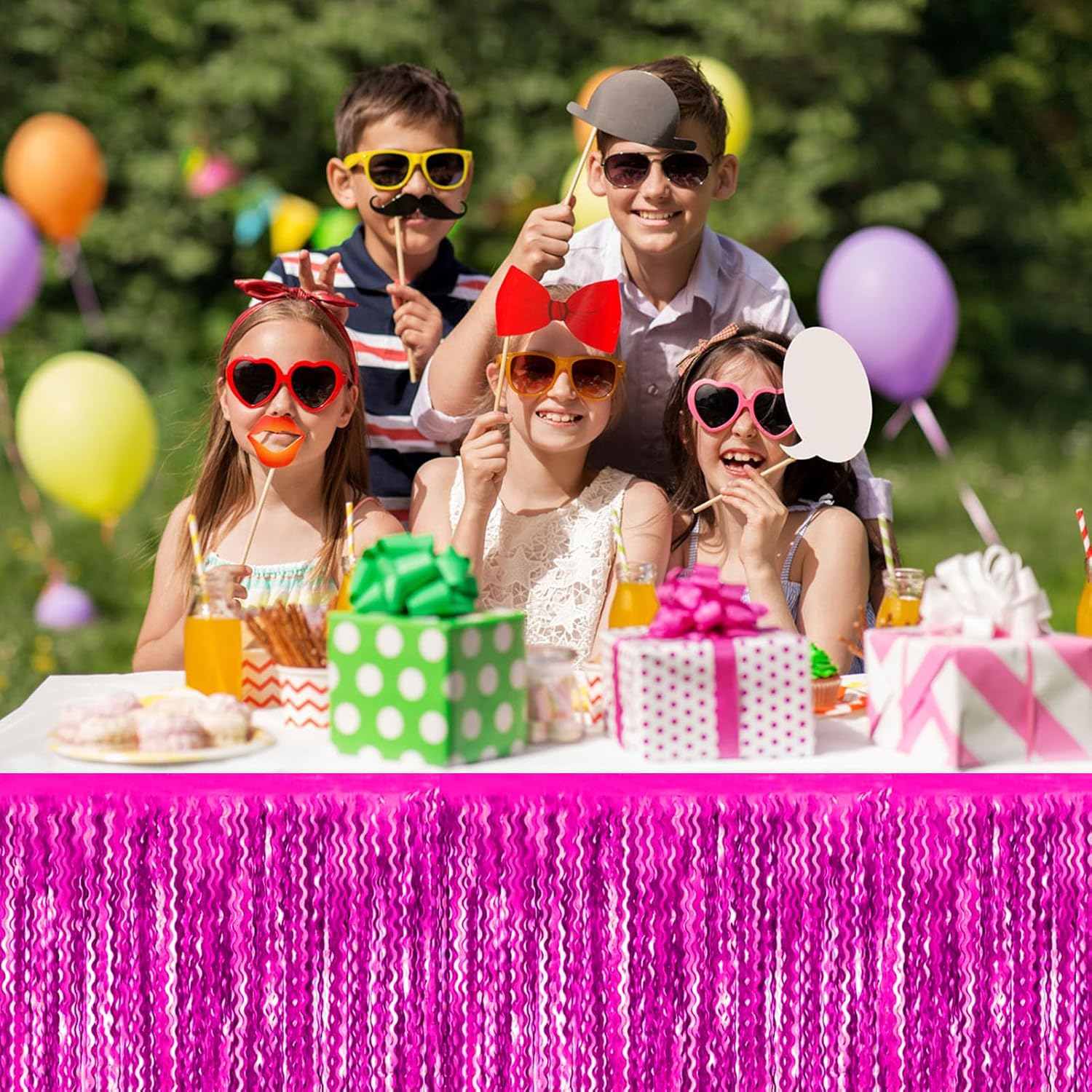 6 Pack 29 x108 Inch Rose Red Wave Foil Fringe Table Skirts Metallic Banner for Tinsel Streamer Garland Backdrop for Parade Floats, Mother's Day, Easter, Wedding, Birthday Party Decoration