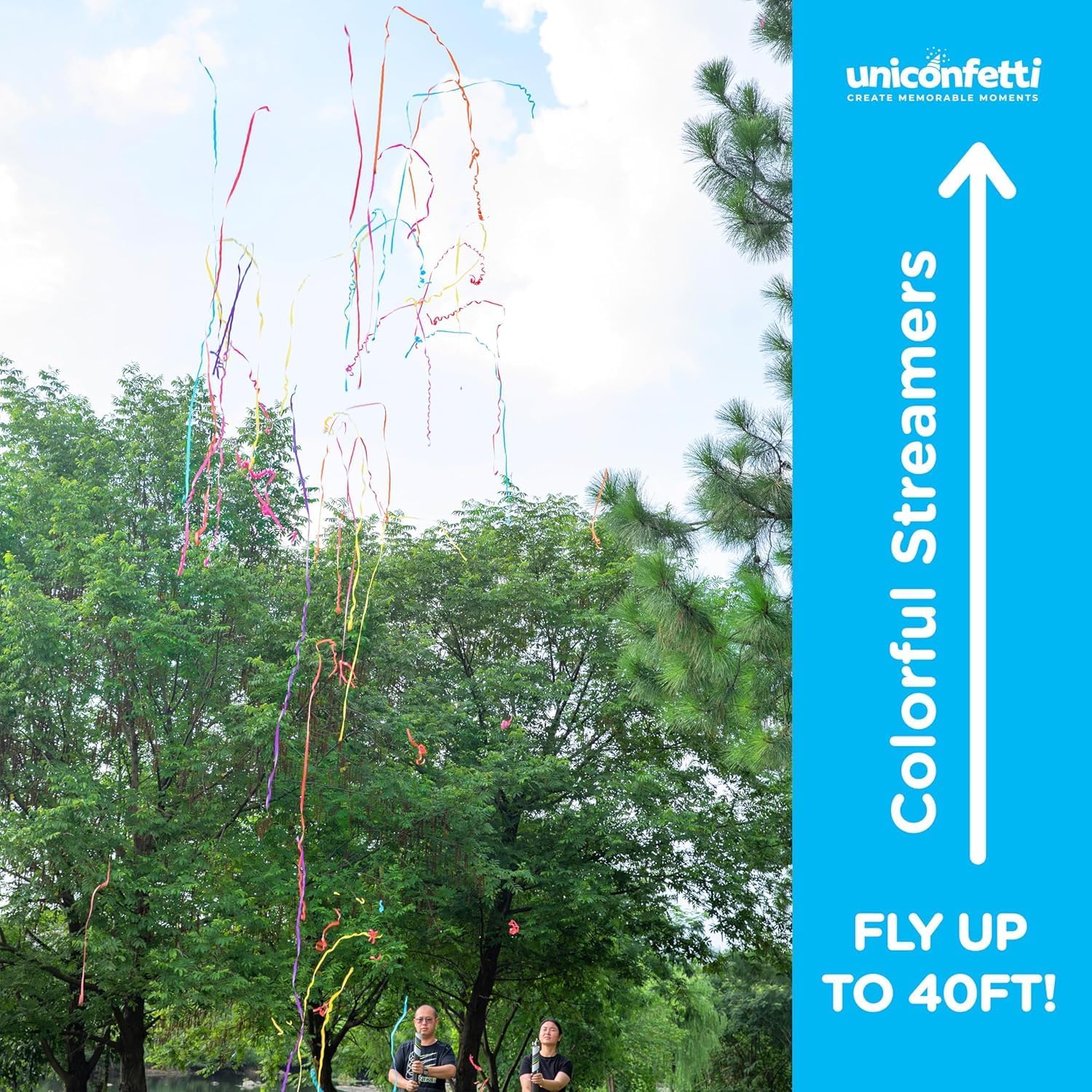 - π EASY POINT & TWIST ACTION - Don't need the strongest arms to blow up these babies! Point upwards away from people and twist to shoot, confetti paper is loaded on top of compressed air and is launched by twisting the cannon. Operation manual is included inside the box.