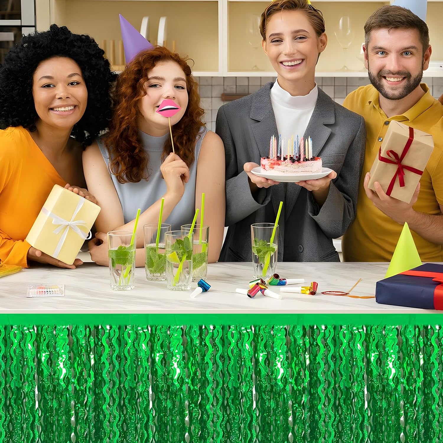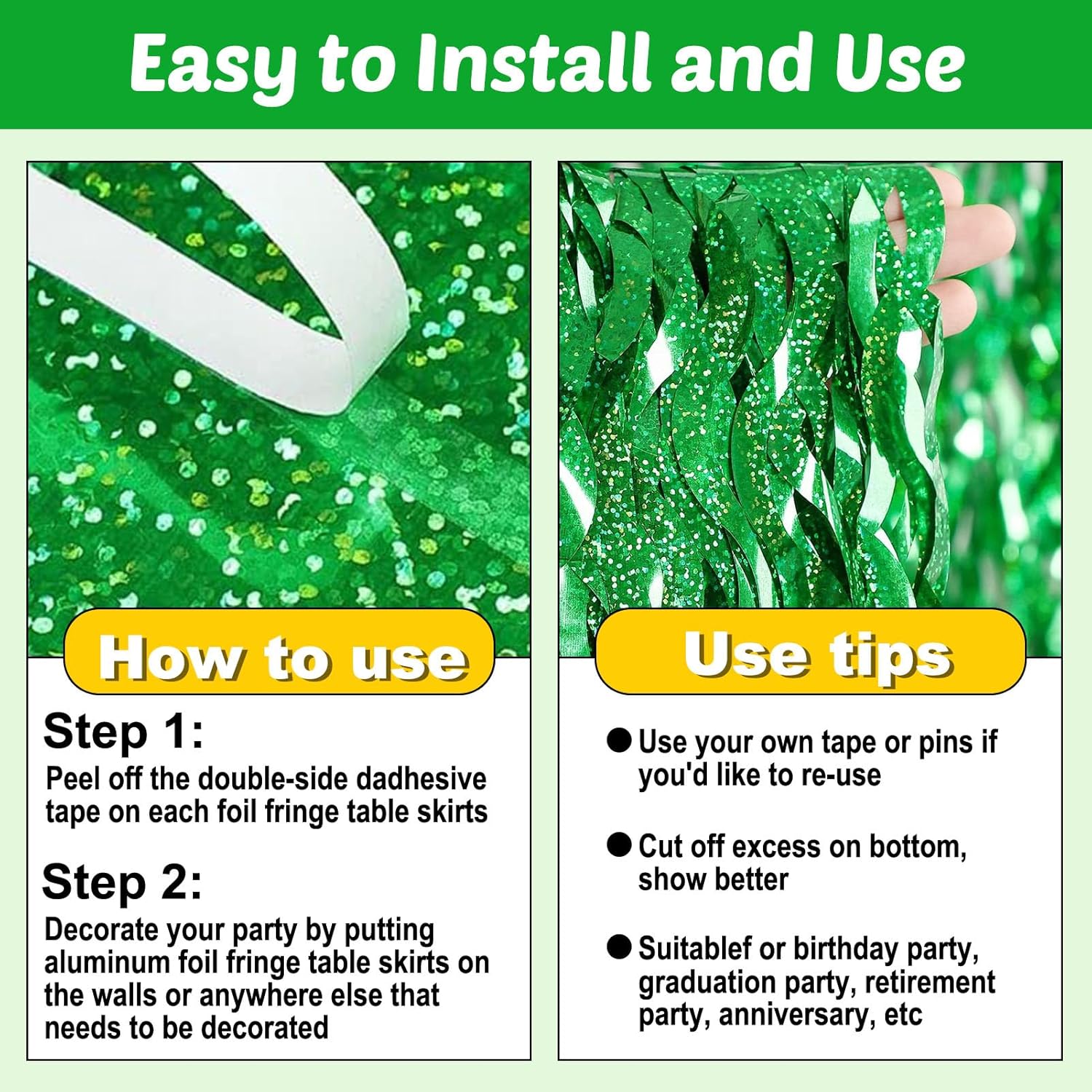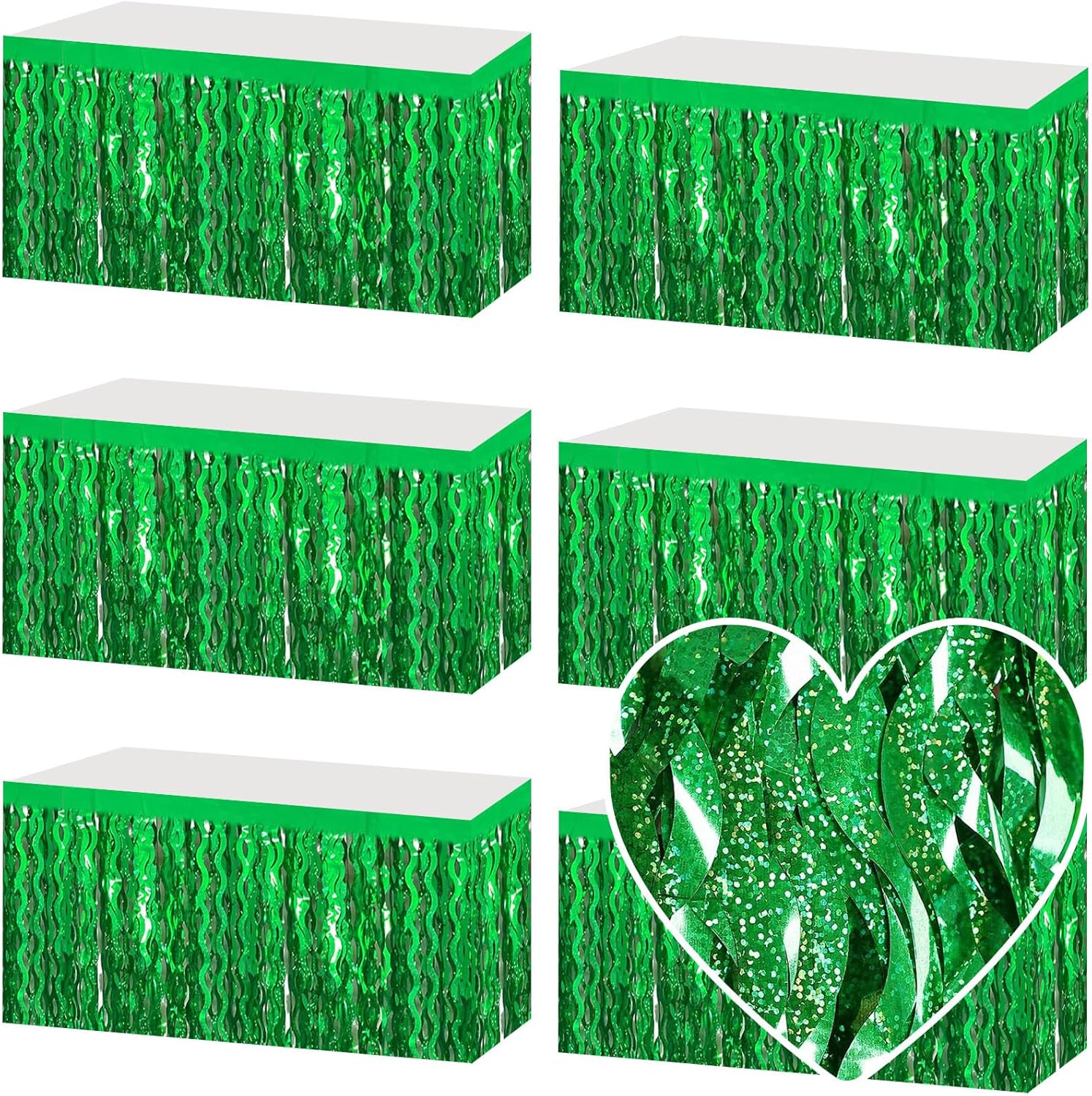 6 Pack 29x108 Inch Green Wave Foil Fringe Table Skirts Metallic Banner for Tinsel Streamer Garland Backdrop for Parade Floats Mother's, Graduate, Mardi Gras, Birthday, Wedding Party Decorations