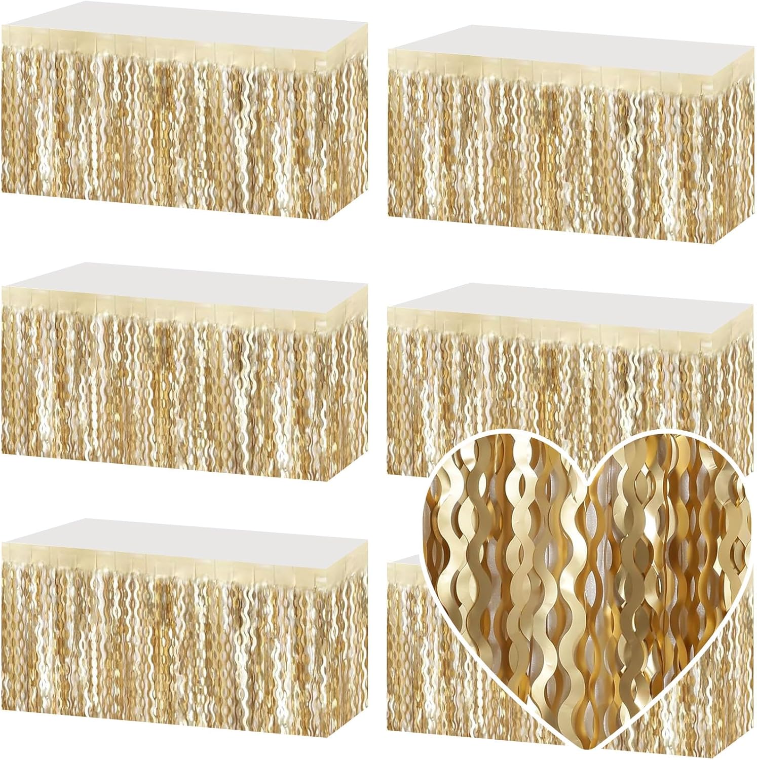 6 Pack 29x108 Inch Champagne Gold Wave Foil Fringe Table Skirts Metallic Banner for Tinsel Streamer Garland Backdrop for Parade Floats Wedding, Mother's Day, Birthday Mardi Gras Party Decorations
