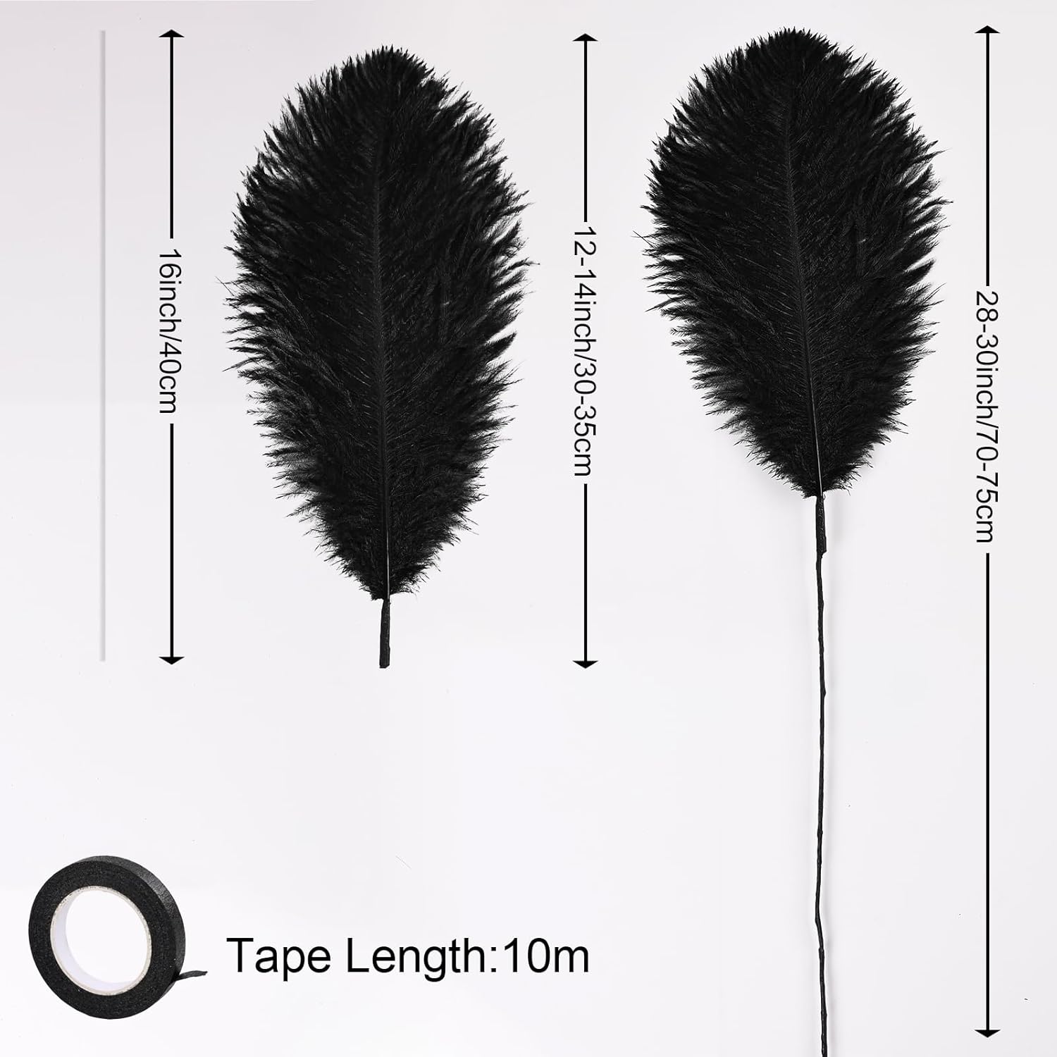 Bulk Black Ostrich Feathers - 12Pcs 12-14inch Crafting Supplies for Centerpiece Table Decorations (Black)