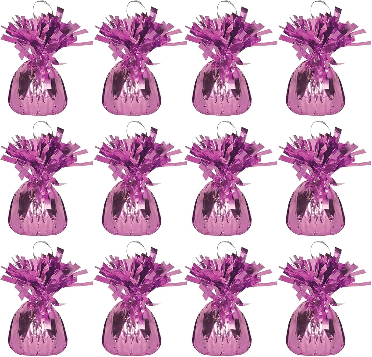ROYALHOUSE Metallic Plastic Wrapped Balloon Weights for Party Decorations, 12 Pcs (Pink)