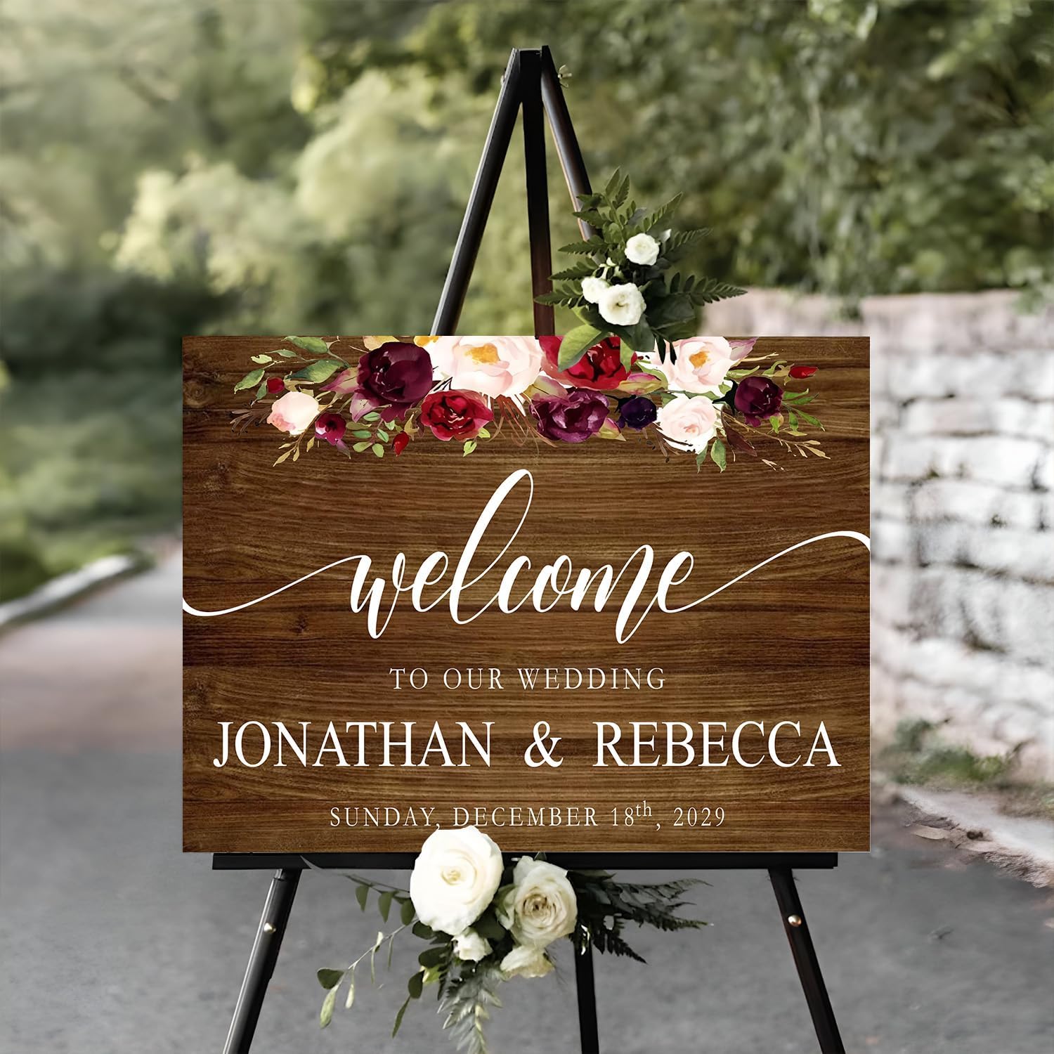 - [Simple to Set Up]: You may also use it indoors for your wedding shower; all you have to do is set up the sign on a desk, easel, stand...