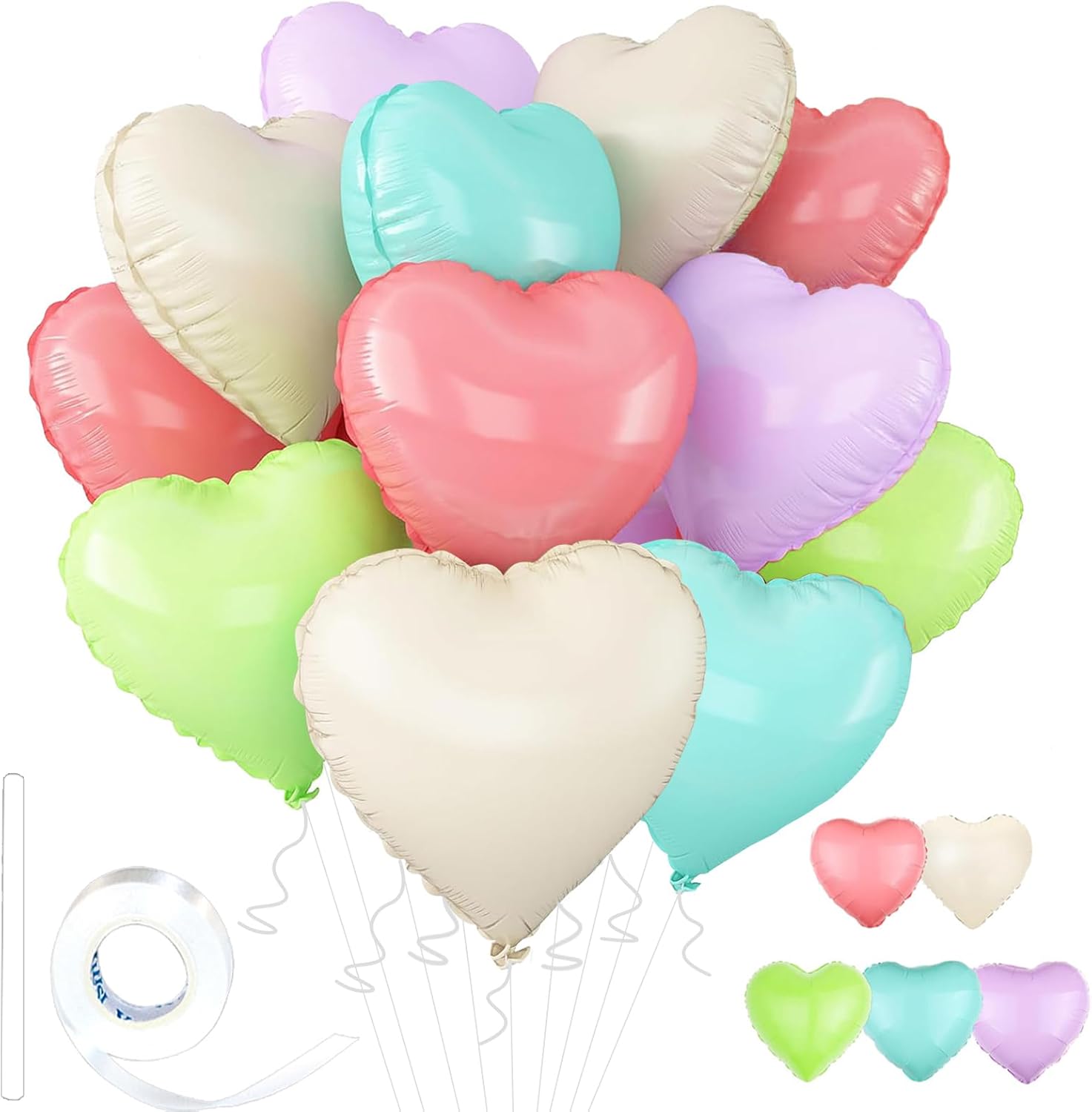 • Heart-Shaped Foil Balloons:The package includes 2Pcs Pastel Purple ,2Pcs Pastel Blue,2Pcs Pastel Green,3Pcs Pastel White and 3Pcs Red Foil balloons measuring 18 inches, 1Pcs white ribbon 393 inches long, 1Pcs straw, which can help you decorate the party better.