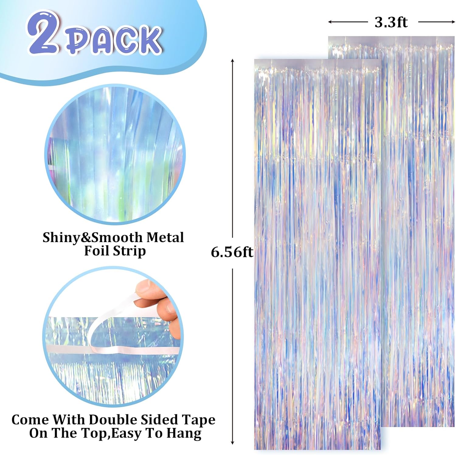 - Stunning Decorative Set: You'll receive 2 pcs iridescent foil fringe backdrop curtains, each measuring 3.28 ft (wide)Γ6.56 ft (drop). Enough length foil fringe curtains backdrops are perfect for the door or wall to create an impressive decoration