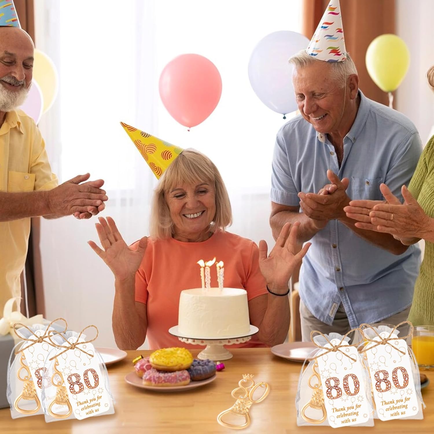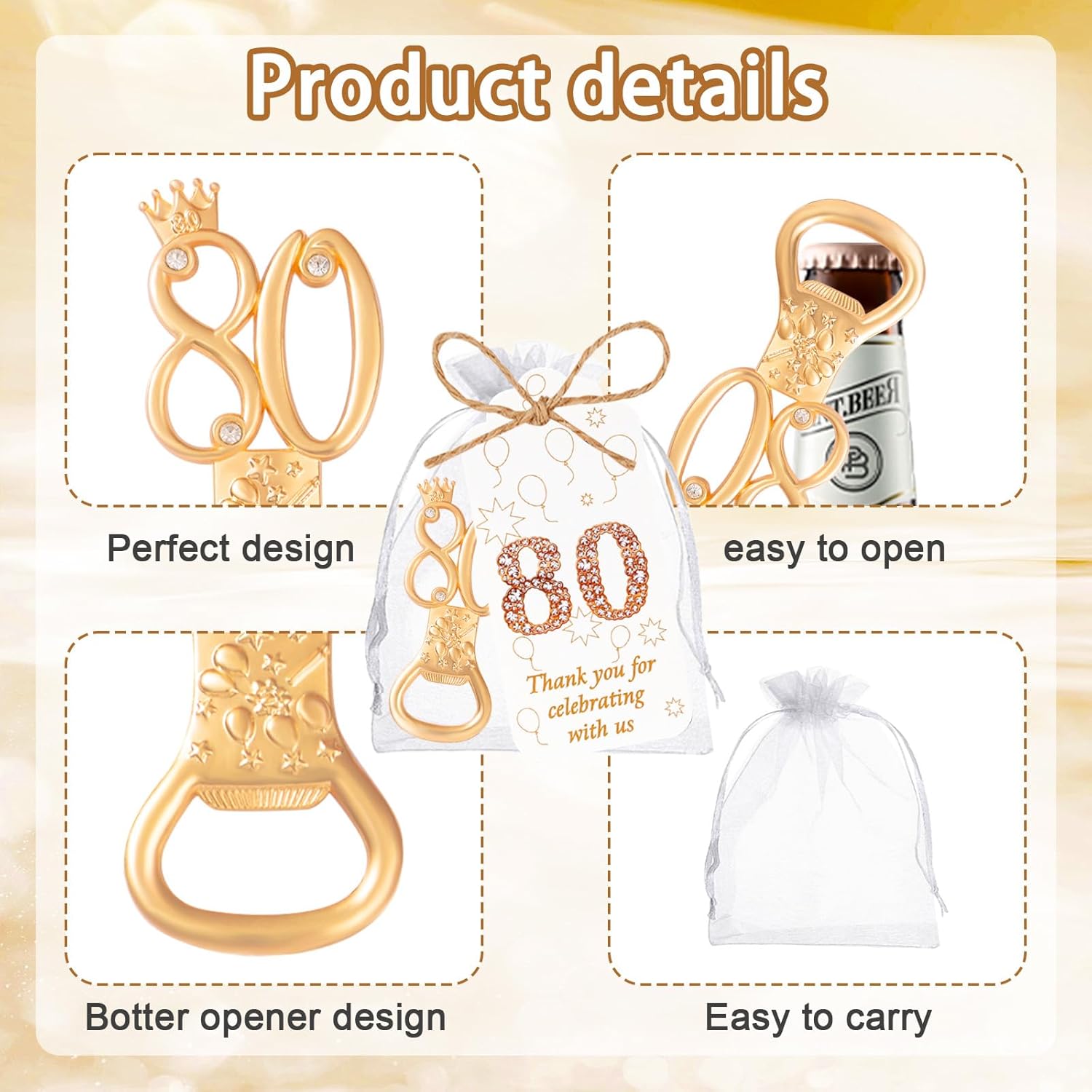 - Generous Set: Our 80th birthday bottle openers are large capacity kits that provide enough gifts for all your guests. You can use the bottle openers to decorate your party and as a keepsake without compromising on quality and style, bottle openers for 80th birthday easily accommodate large parties