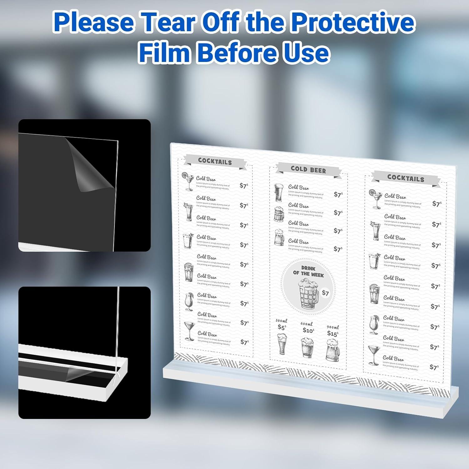 - Protective Film for Scratch-Free Surface: Each sign holder comes with a protective film on both sides to safeguard against scratches during transportation and handling. Before use, remember to remove the protective film on both sides for a scratch-free surface.