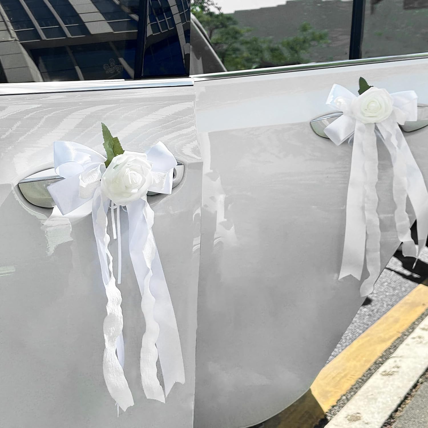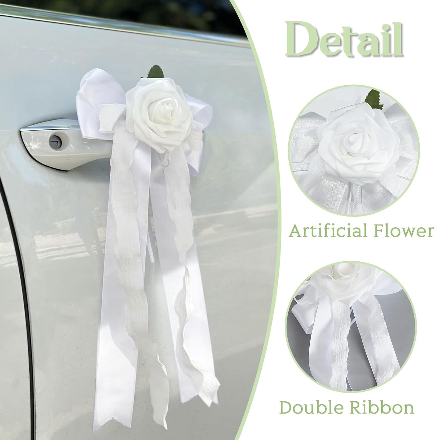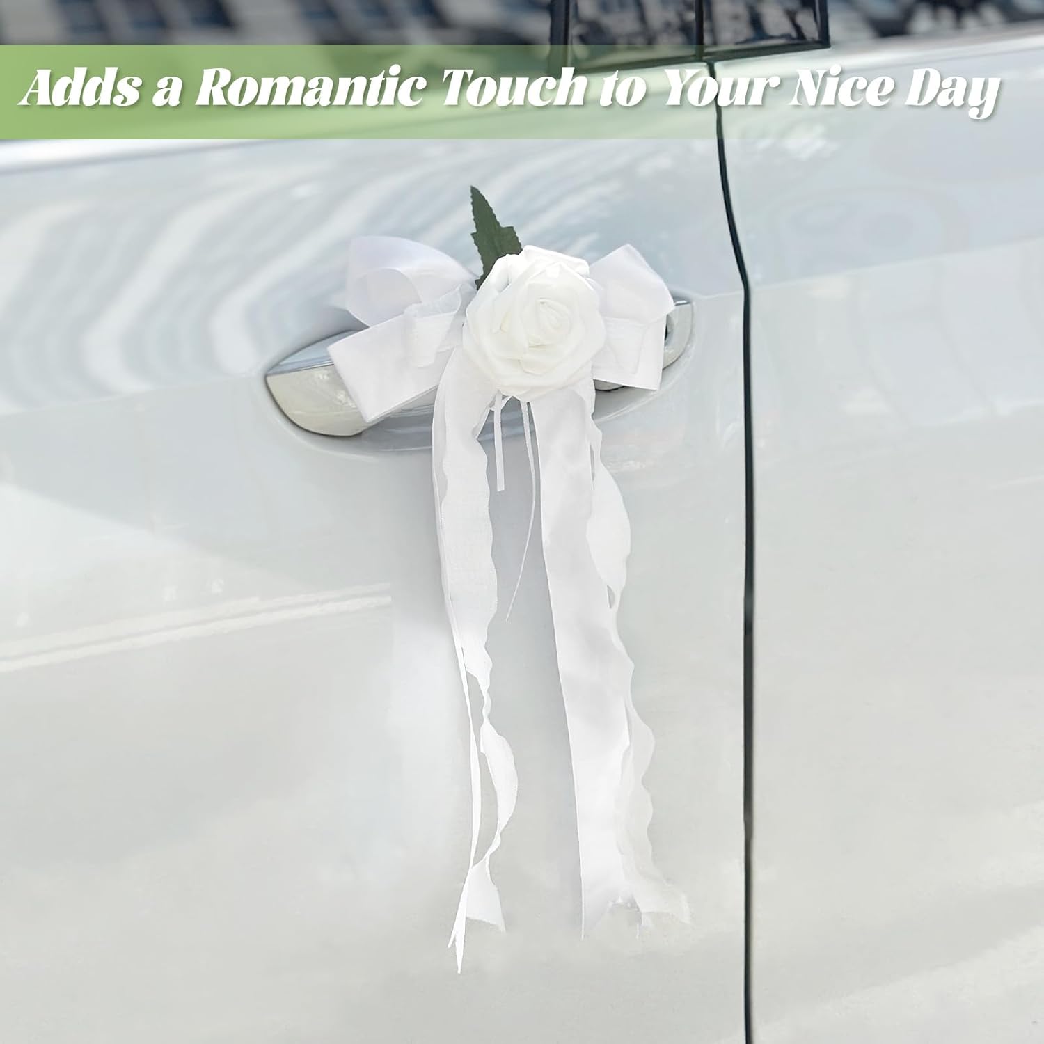 - Wedding Car Decoration Set: This set includes 6 decorative bouguet flowers car ribbon decorations, designed for car door handles and rearview mirrors. The mini bouguet flowers can your wedding car looks elegant and romantic from every angle