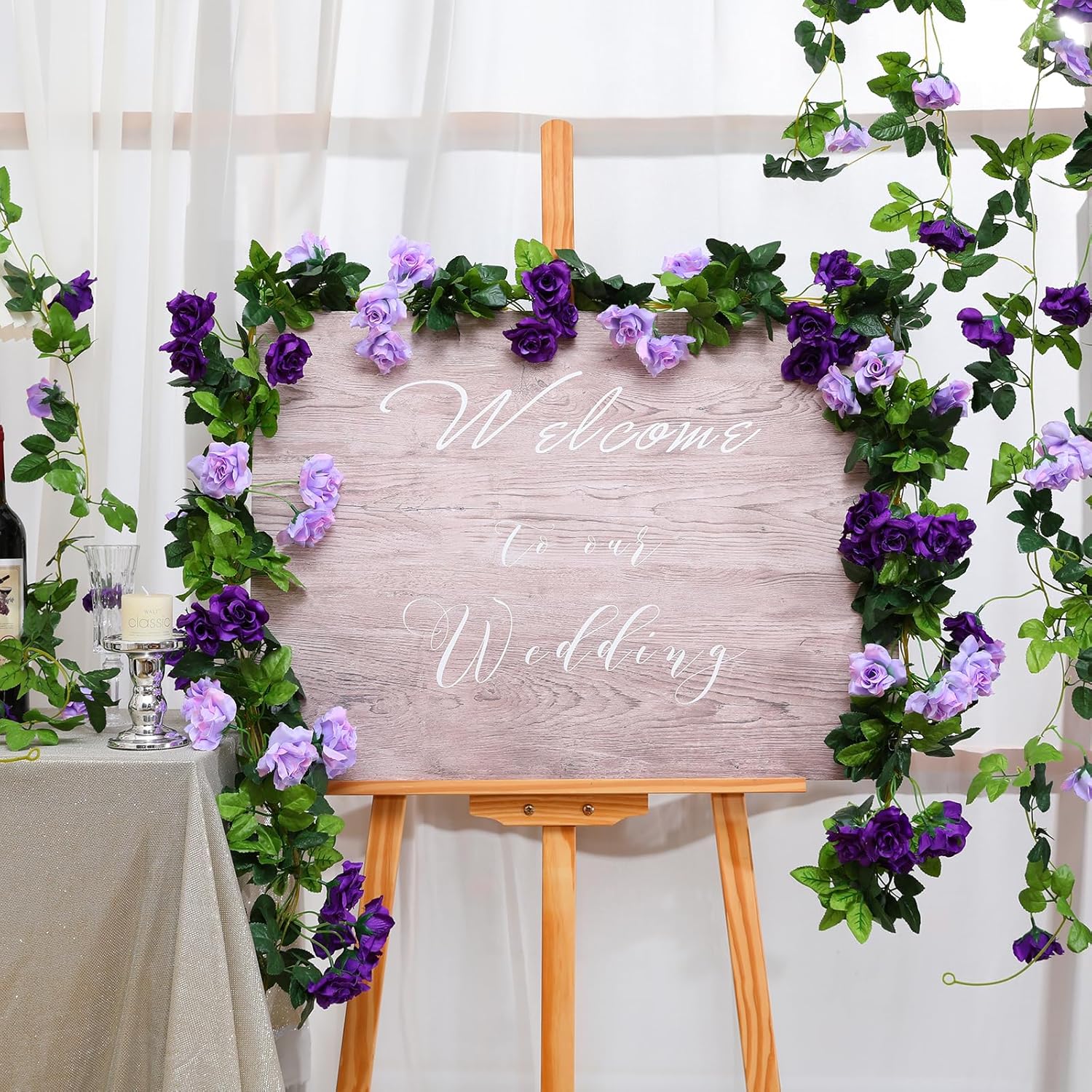 Floweroyal 4 Pack Artificial Flower Garlands 7.9FT Fake Rose Vines Silk Flowers Hanging Rose Ivy for Wedding Arch Party Home Garden Wall Decor (Purple)
