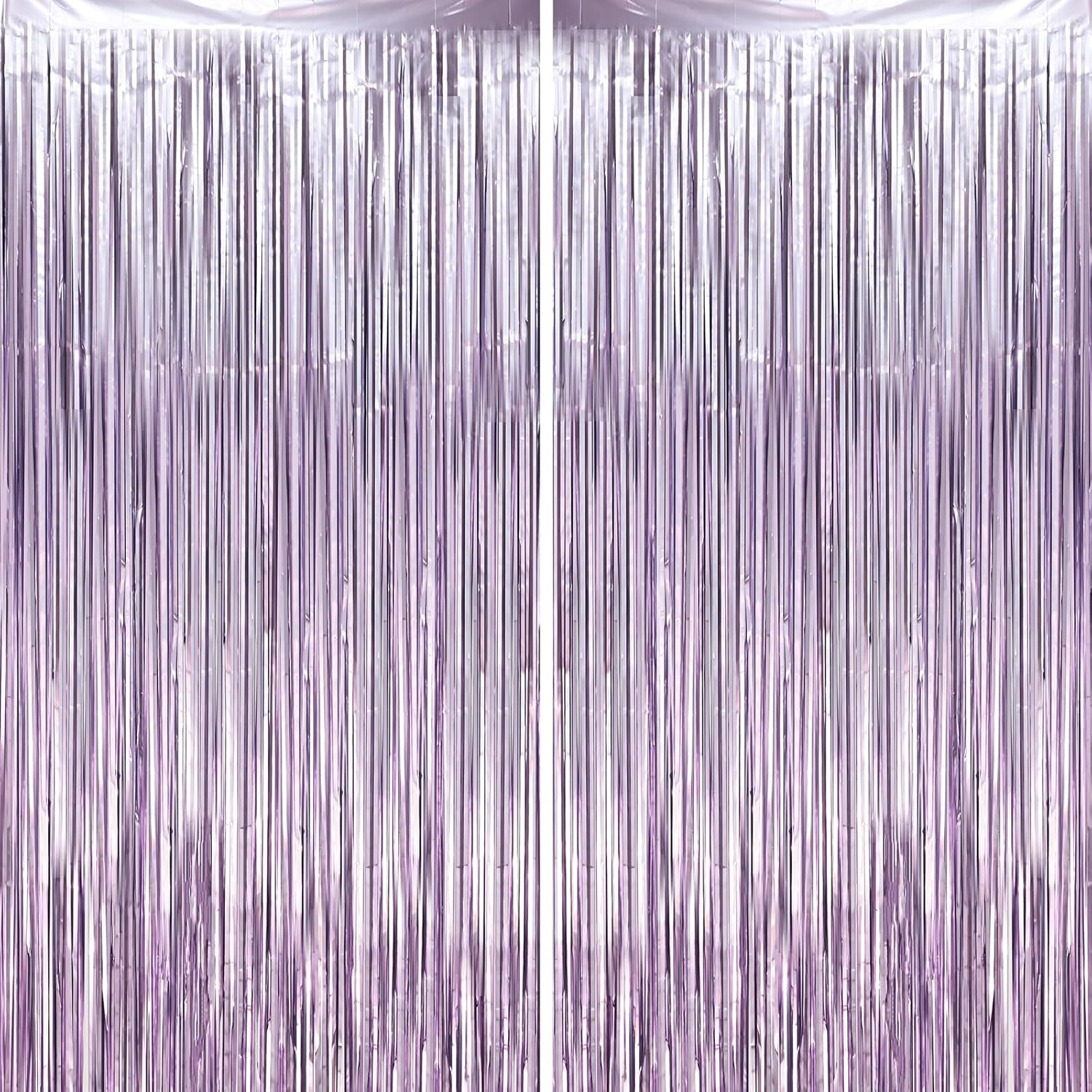 - Stunning Decorative Set: You'll receive 2 pcs light purple foil fringe backdrop curtains, each measuring 3.28 ft (wide)Γ6.56 ft (drop). Enough length foil fringe curtains backdrops are perfect for the door or wall to create an impressive decoration