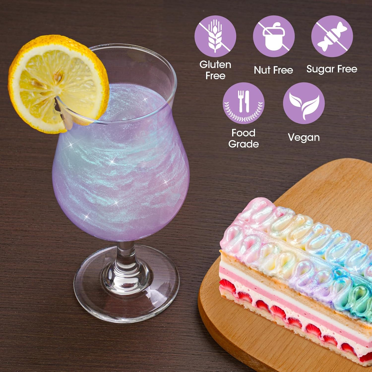 - 🌟【Vegan & Allergen-Free】Food-grade glitter uses only the highest quality vegan ingredients and does not contain common food allergens, including gluten, nuts or dairy products, so everyone can use and enjoy this product regardless of diet or food allergies. Unlike food contact glitter, these are 100% edible, so you don't need to worry about using them in your creations to make them sparkle for all.