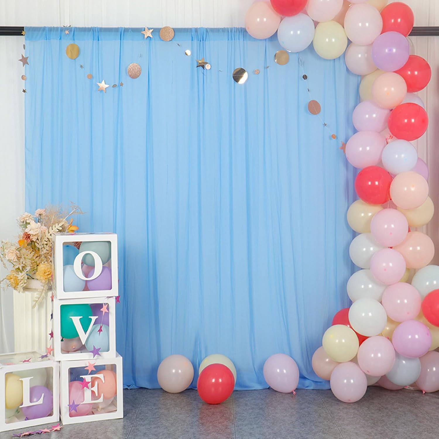 - β SHEER CHIFFON CURTAINS :Includes 2 Panels Width 58 Inches (total width 116 inches for 2 panels) chiffon backdrop curtain Sky Blue color--Different electronic devices seeing the image colors will different . Please refer to the actual product for specific color.