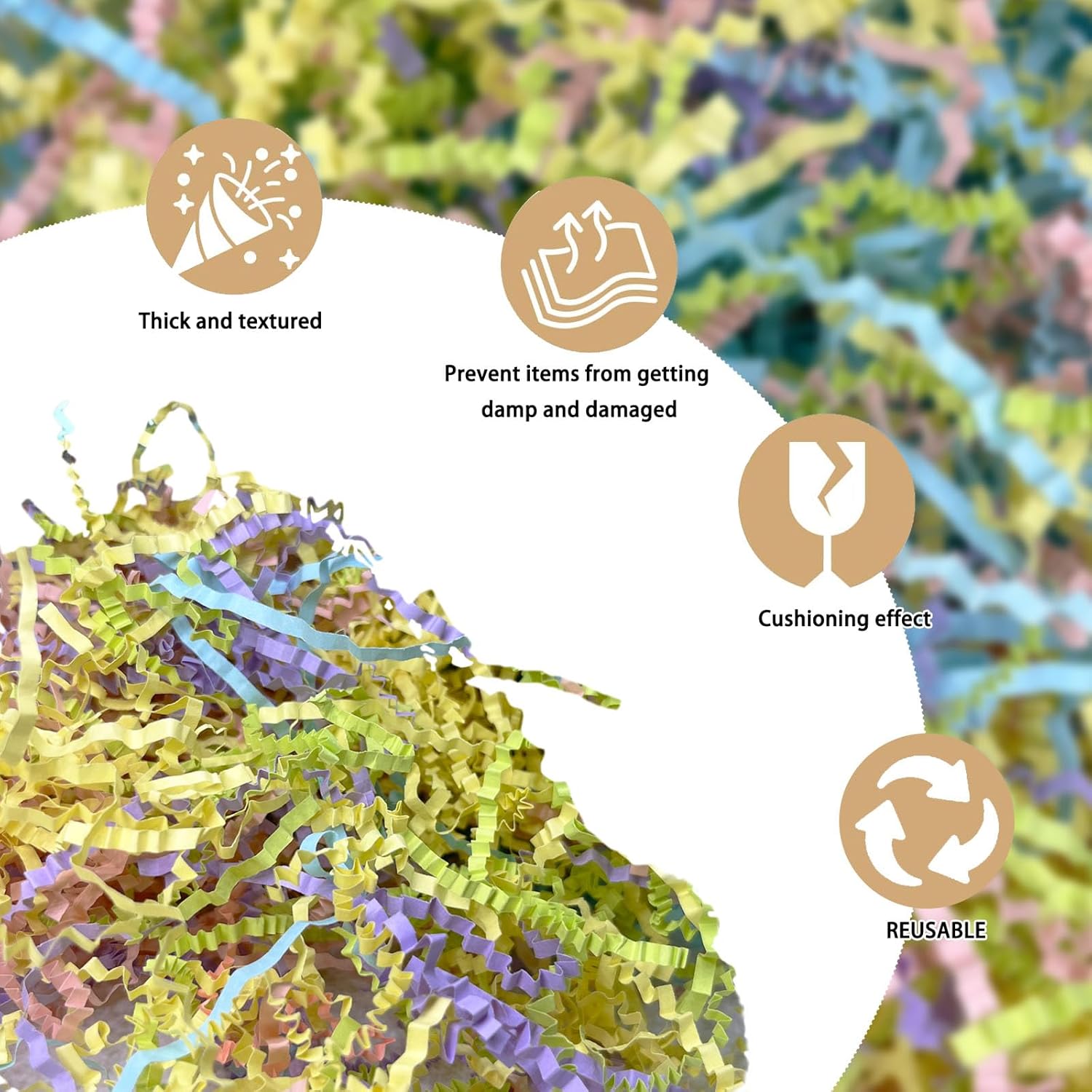 - 【Great for Gift Wrapping】Versatile crinkle paper for packaging is the perfect decorative shredded paper for gift boxes gift baskets, gift bags, Easter baskets, display boxes for merchandise, food boxes, business gifting, handicraft packaging, business events, subscription boxes, and mailers filler paper.