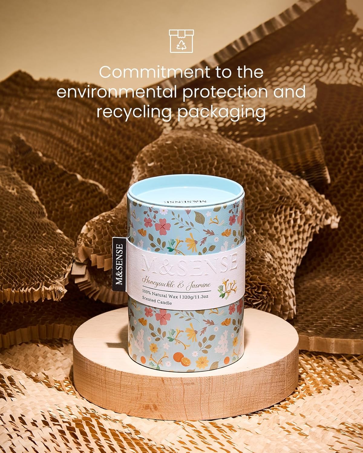 M&SENSE Honeysuckle Jasmine Scented Candle, Medium Jar Candle 11.3oz Natural Soy Wax for Home Scented, Floral Candles Gift for Spring Holiday, Up to 70 Hours Burning Long-Lasting Fragrance