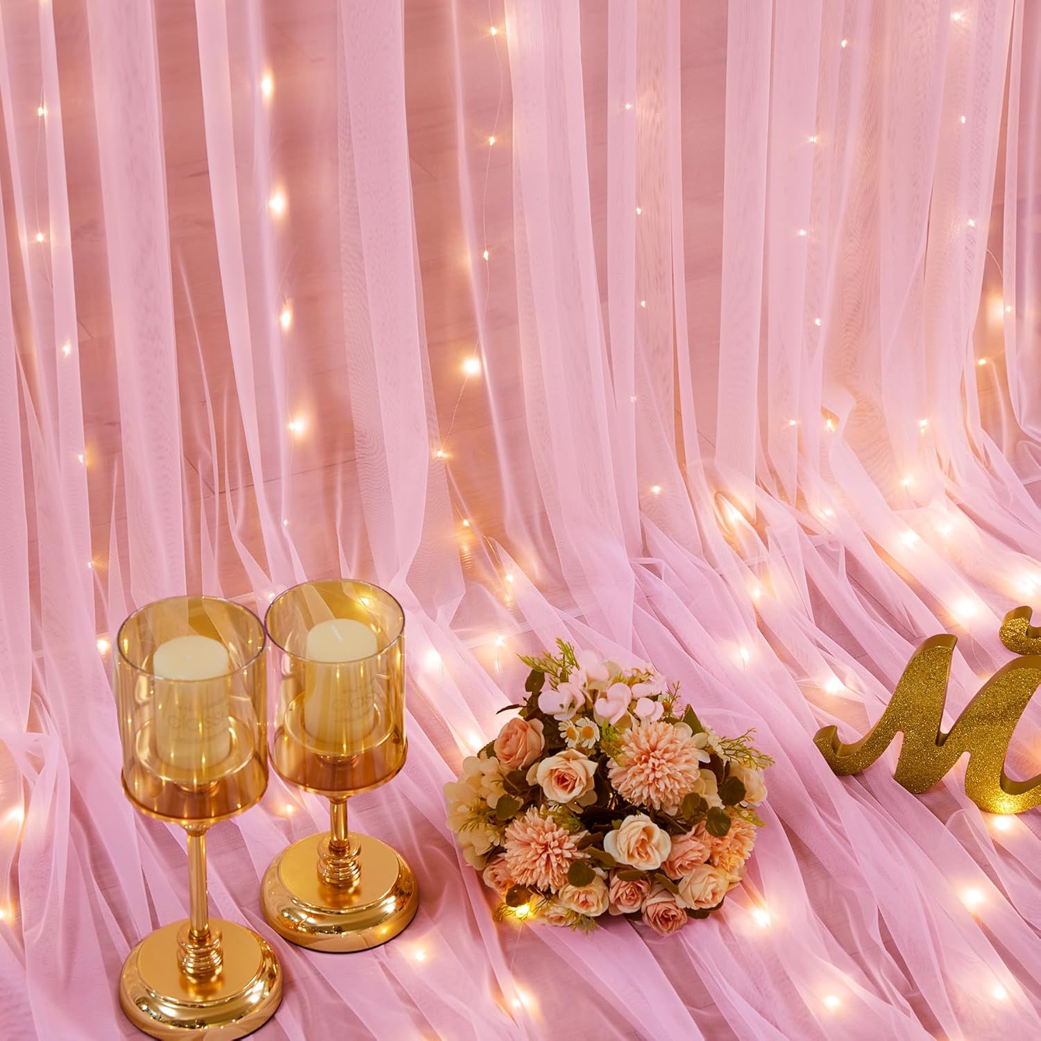 - Pink Sheer Backdrop Curtain with Lights Occasions: Perfect for weddings, baby showers, bridal showers, birthday parties, anniversaries, New Year celebrations, family gatherings, and other occasions to create a memorable photo backdrop. The tulle backdrop curtains can be reused many times. For a fuller effect, consider purchasing multiple sets to use together