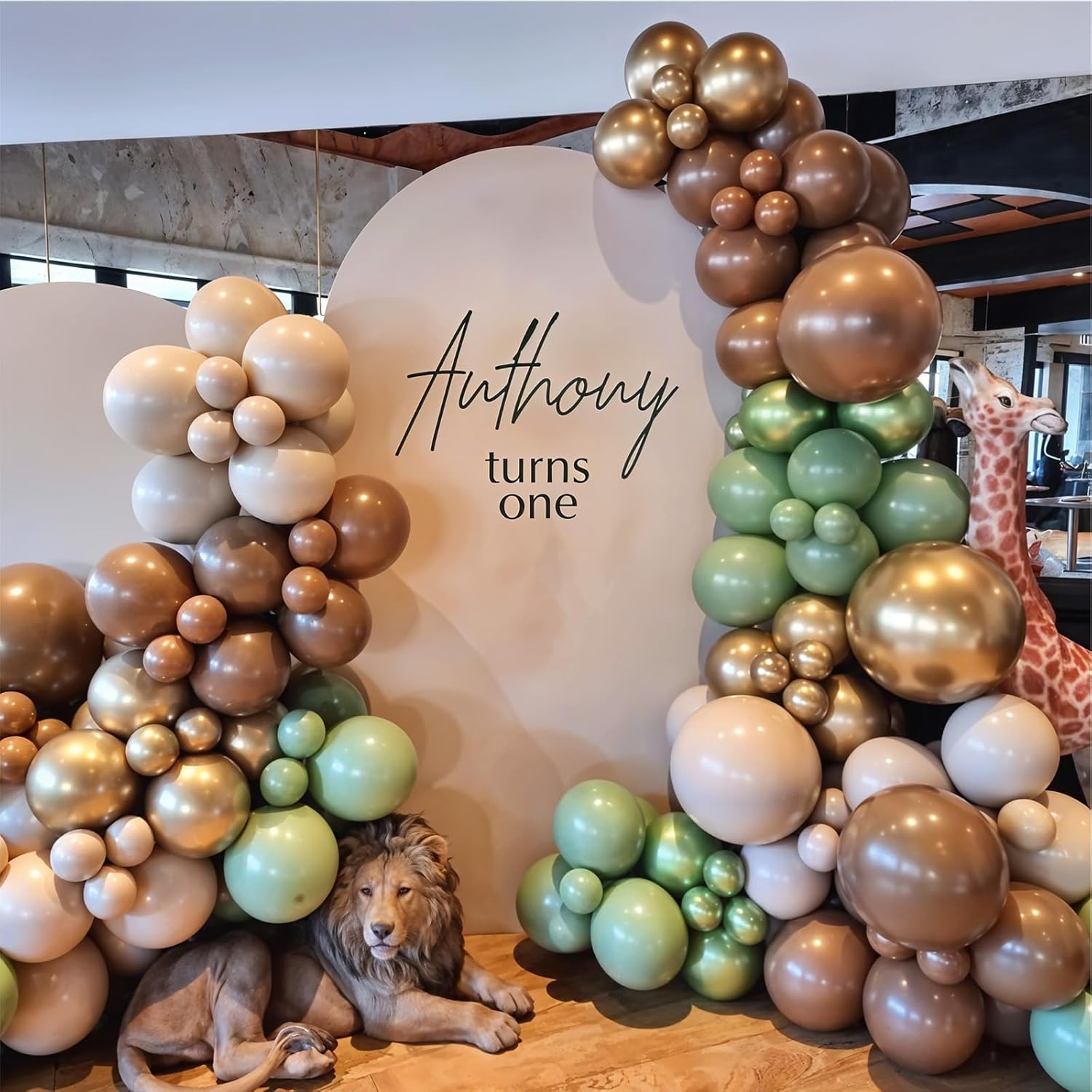 - Versatile scene application: Our jungle woodland party balloons can create a joyful holiday atmosphere and immerse you and your family in the party world! The sage green brown gold balloons are perfect for kids boys girls eucalyptus camo army hunting theme party decoration, jungle safari party decor, birthday party, baby shower, gender reveal, bachelorette christmas, new year eve party decorations.