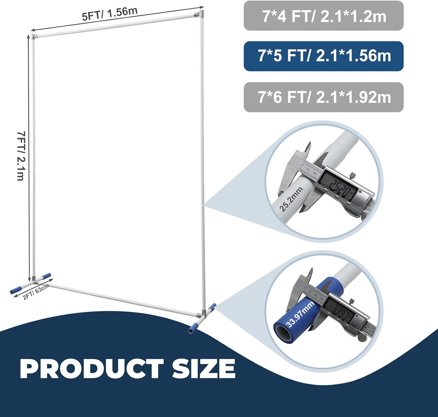 7*6FT Metal Backdrop Stand Commercial Grade, Extra Thick Rustproof Frame for Backdrop/Wedding/Party, Heavy Duty & Portable with Wide Adjustable Legs (White)
