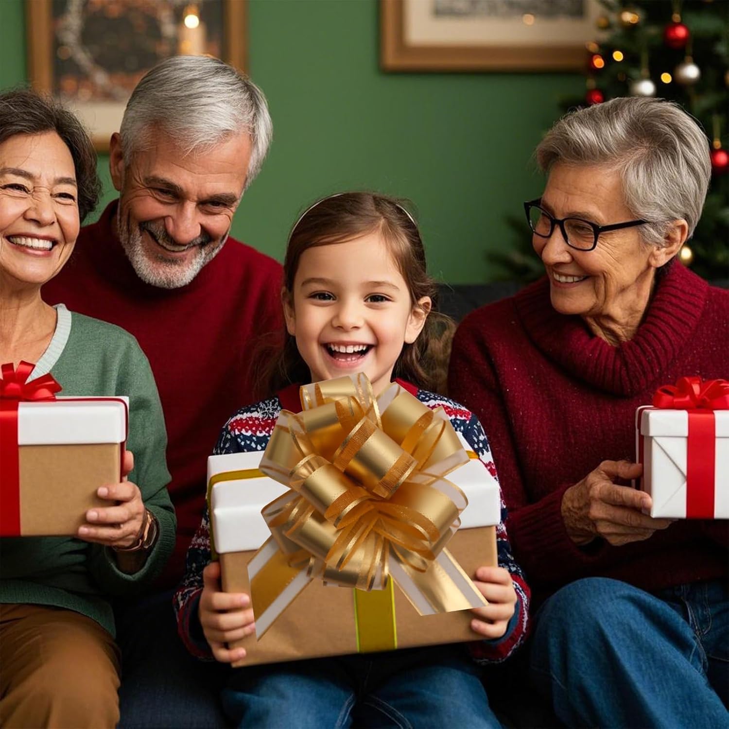 6 PCS 6 Inch Organza Golden Pull Bows - Perfect for Gift Wrapping, Wedding Decor, Car Bows, Birthday Parties, Christmas, and Valentine's Day