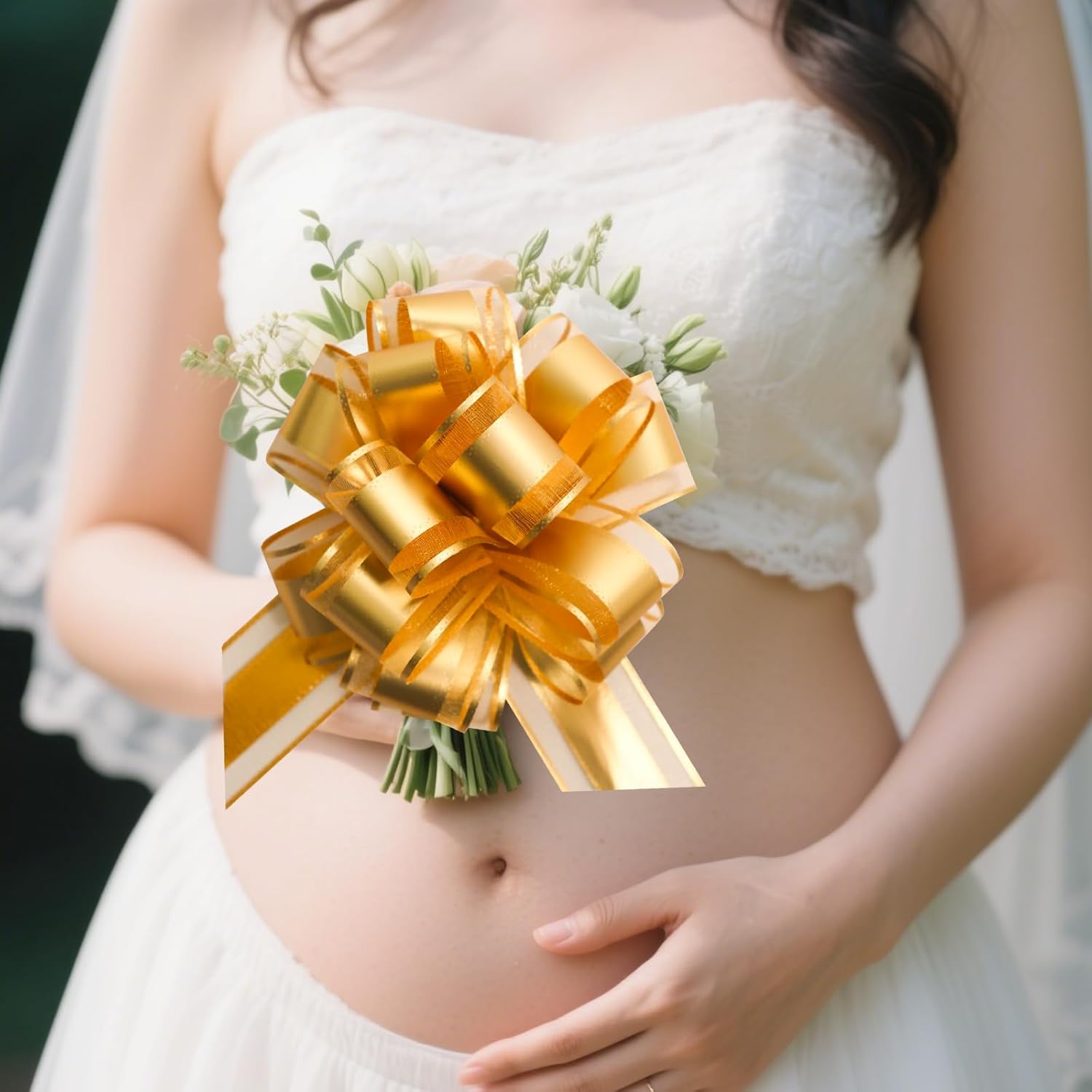 - East to use: You get a flat package, you need to install it by yourself, the installation is very easy, first you need to find 2 ribbons, hold the ribbons with one hand and push the ribbons up with the other hand, a little bit of tidying up and you will get a beautiful bow, you can tie a knot at the top of the bow so the bow won't come loose.