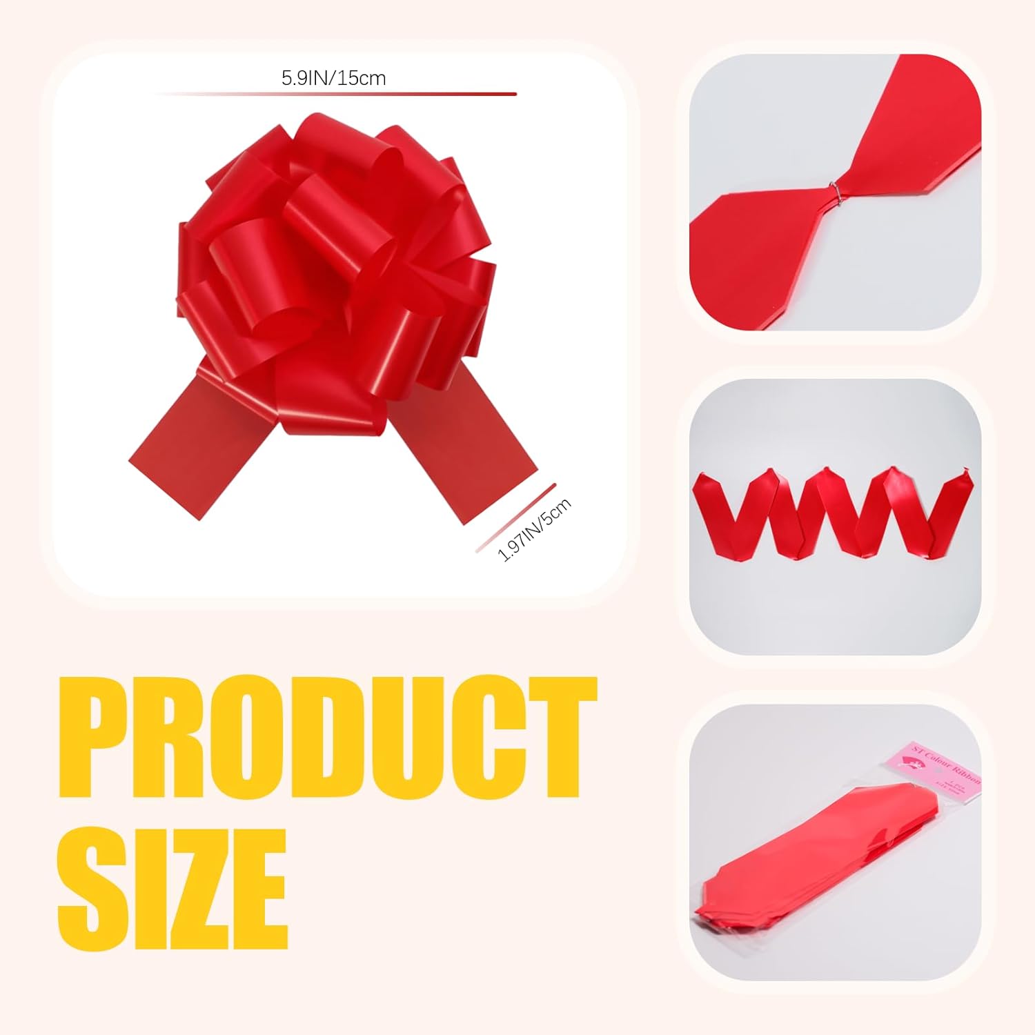 6 PCS 6 Inch Red Pull Bows - Perfect for Gift Wrapping, Wedding Decor, Car Bows, Birthday Parties, Christmas and Valentine's Day