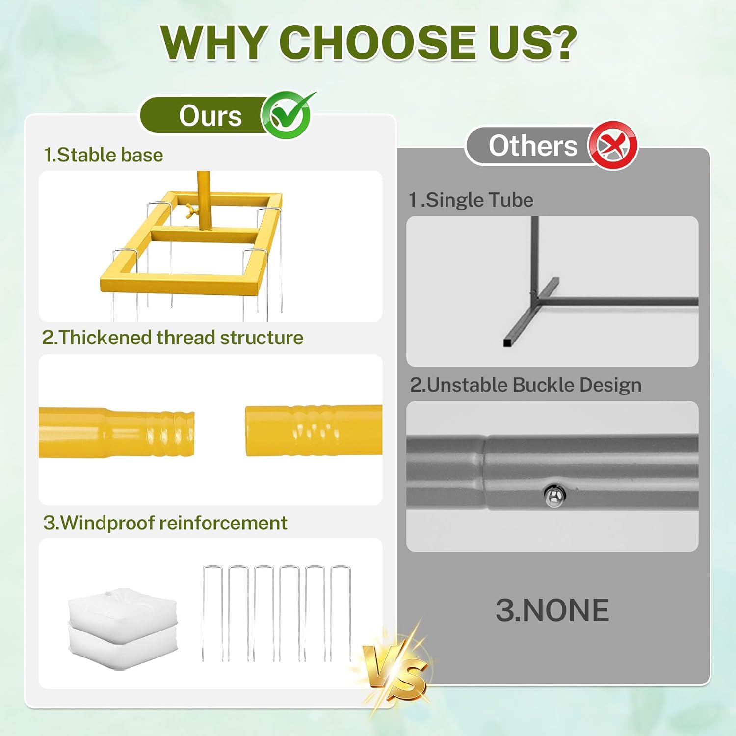 - [Heavey Duty Backdrop Stand] Our 8FT heavy-duty square backdrop stand features a gold rust-resistant finish and a sturdy, premium iron base for superior stability. Unlike other arch backdrop stand that use screws, which can loosen over time, our pipe joints connect via a rotating mechanism for a more secure and long-lasting hold. It also comes with a waterproof storage bag, making it easy to store and transport.