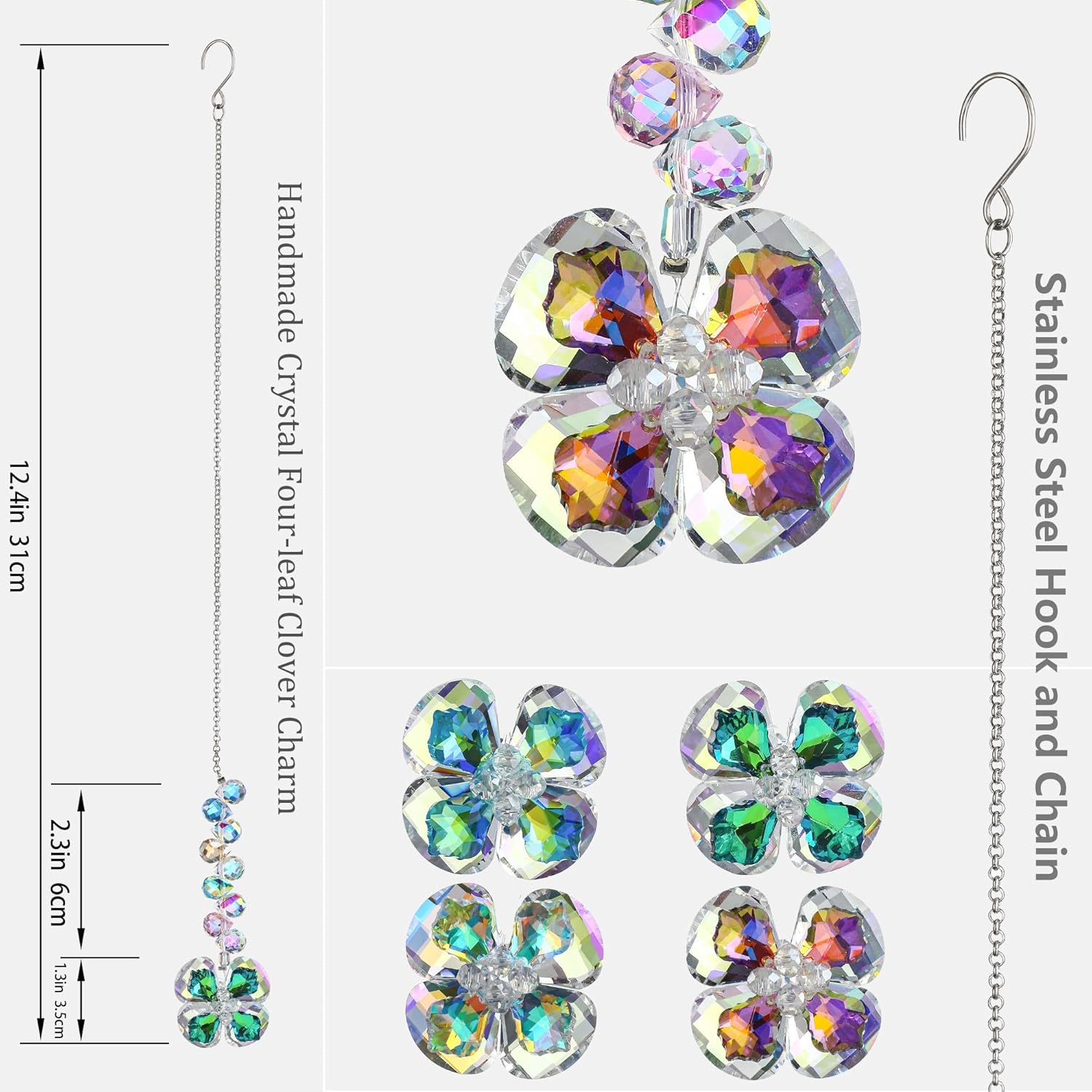 - Crystal Flower Suncatcher: Features 4pcs crystal four leaf clover in different colors, creating rainbow dots in sunlight